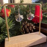 Boucles d’oreilles, très légères, esprit vintage, composées d’une attache dormeuse en métal argenté vieilli sous lequel se balance un joli cabochon de verre rond et bombé, transparent et irisé recouvert d’une fine libellule également en métal argenté vieilli.
