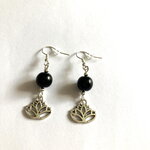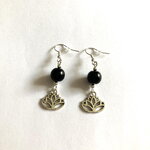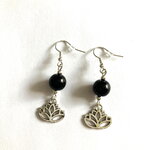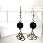 Boucles d'oreilles onyx noir et fleur de lotus bijou femme