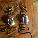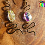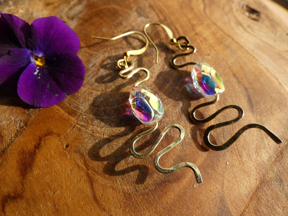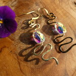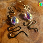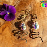 J'ai façonné les serpents à l'aide de la technique du martelage. J'ai ensuite ajouté des perles scarabées en cristal autrichien aurore boréale pour apporter une note lumineuse et colorée supplémentaire à cette sublime création.