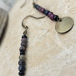 Boucles d’oreilles pendantes réalisées à la main à partir de perles et breloques de seconde vie. Une création artisanale en mini-série, au style doux et authentique, pour offrir une nouvelle histoire à des mat�