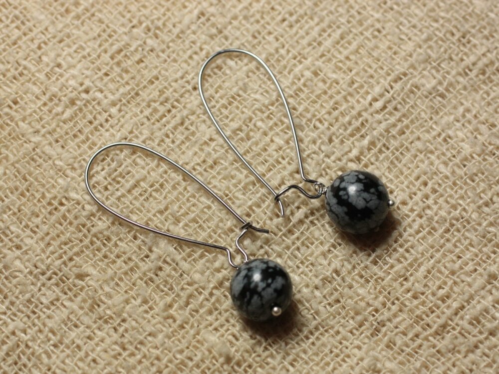 Boucles d'Oreilles Pierre semi précieuse - Obsidienne Flocon 10mm