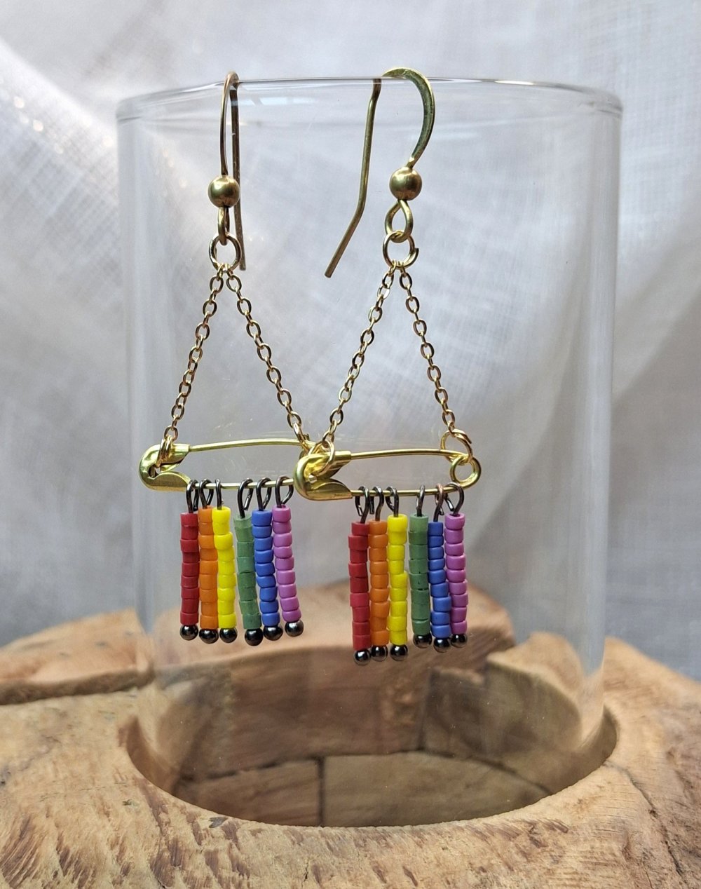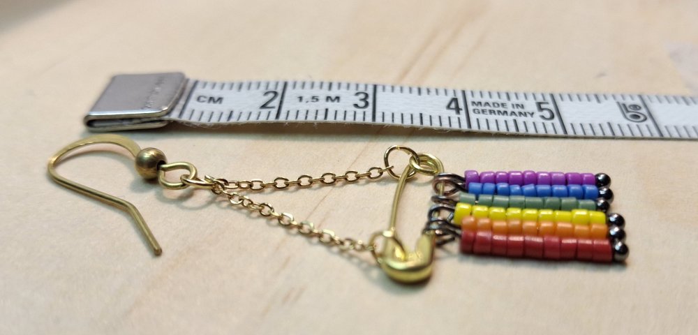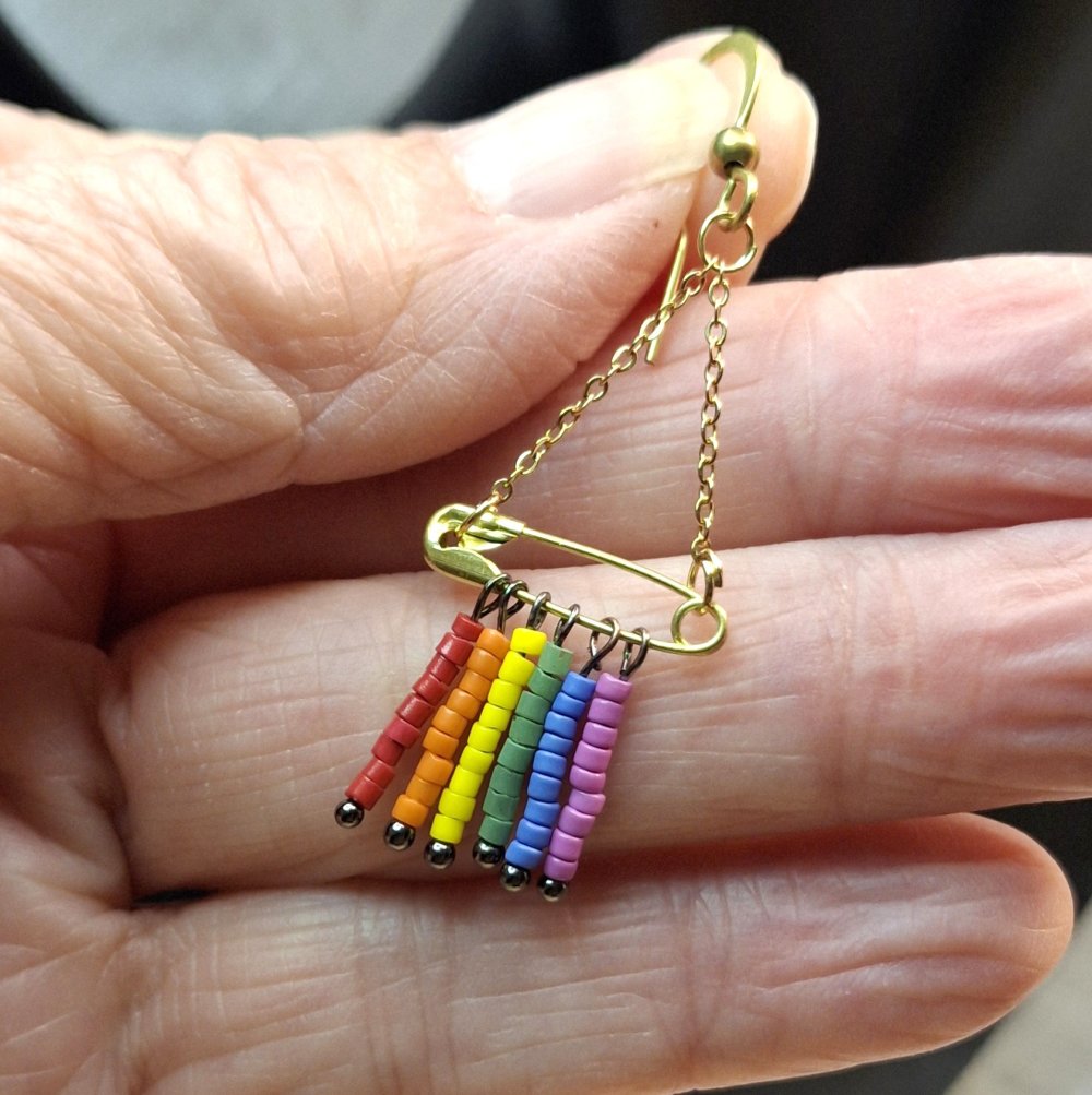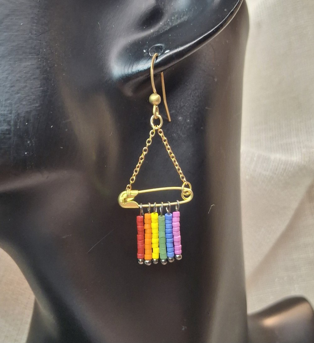 🔹Design : Composition de 6 rangs de perles de rocailles aux couleurs du drapeau LGBT (Rouge, Orange, Jaune, Vert, Bleu, Violet) montés sur tiges individuelles.