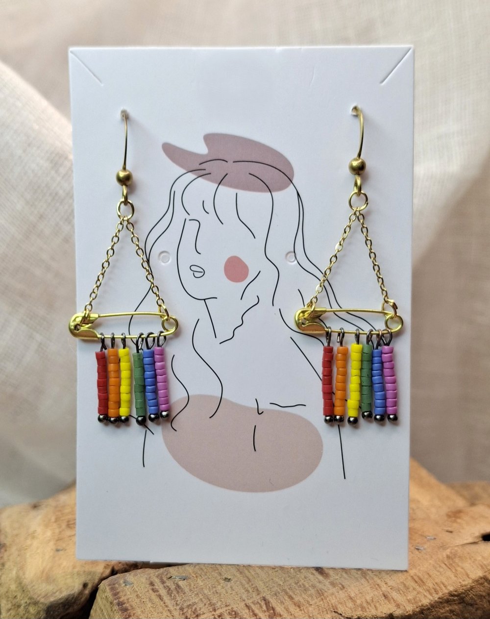 Affichez fièrement vos couleurs avec ces boucles d’oreilles pendantes au design unique et engagé.