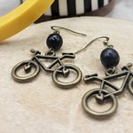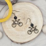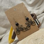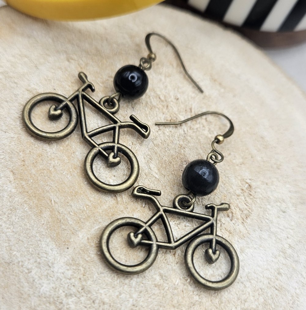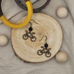 Boucles d’oreilles pendantes réalisées à la main, perles et breloques de seconde vie, associées à des éléments neufs. Une création artisanale en mini-série, au style doux et authentique, pour offrir une nouvelle histoire à des mat�