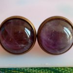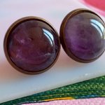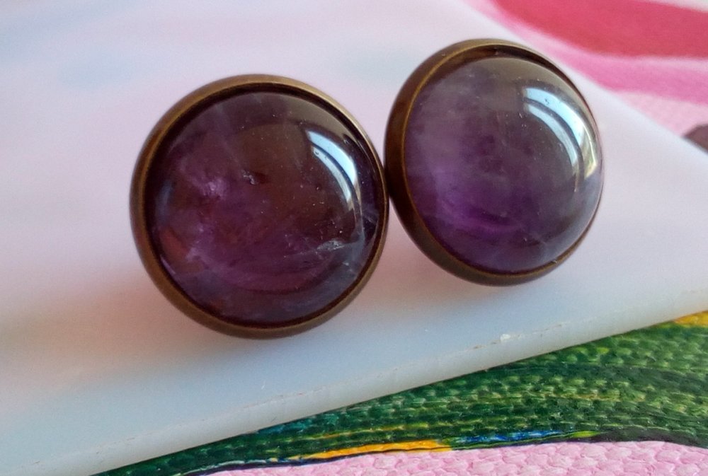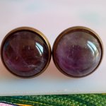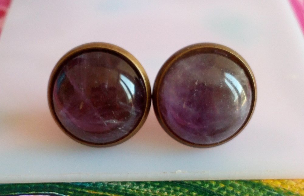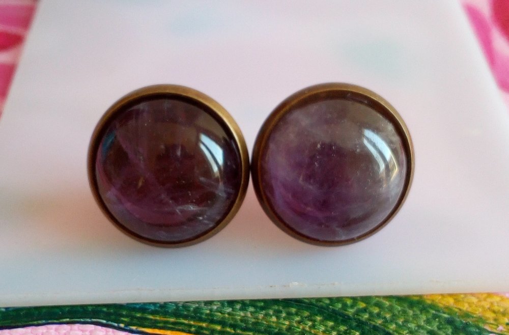 Très jolie paire de clous d oreilles, nickel free,boucles oreilles percées,quartz pierre fine precieuse,violet bronze fleuri ,bijou femme homme unisex,fete des meres st valentin,boho bobo gothique baroque,rococo victorien punk,edouardien fantastique,amour amitié,cabochons ronds 14 mm,pierre naissance astrologie,meditation bien etre spirituel,lithotherapie chakra energie,