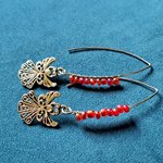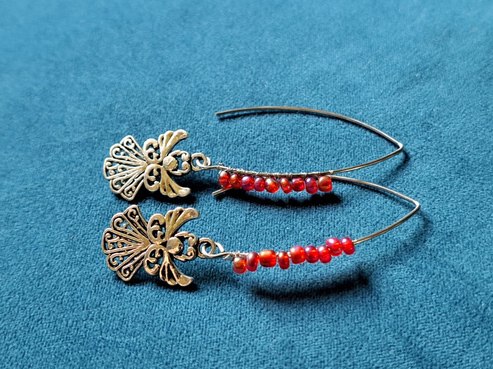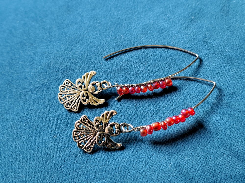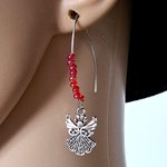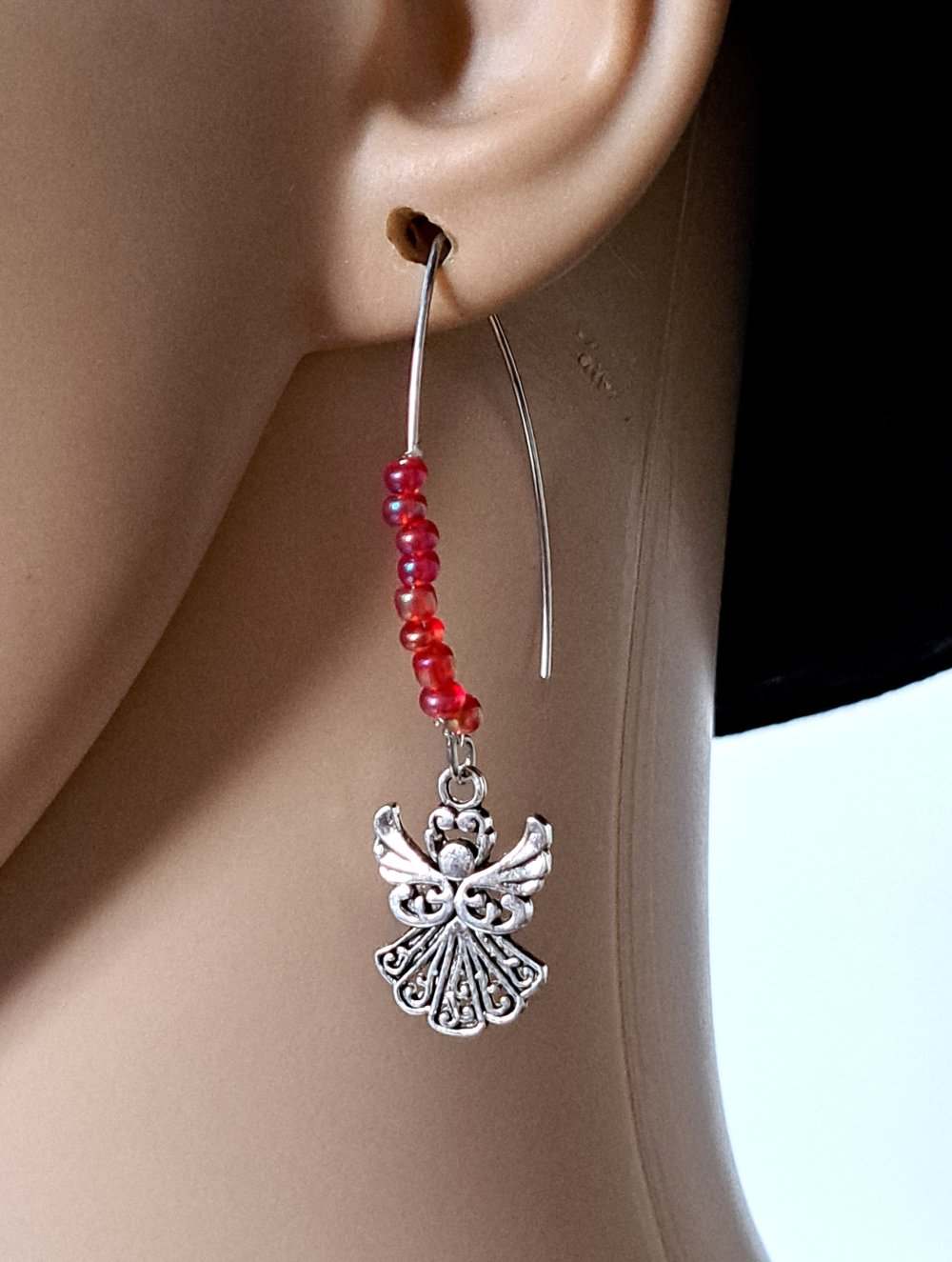 boucle d'oreille ange, perles en rocaille en verre rouge, crochets en métal acier Inoxydable argenté