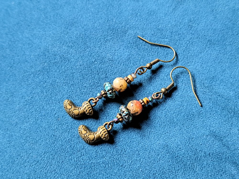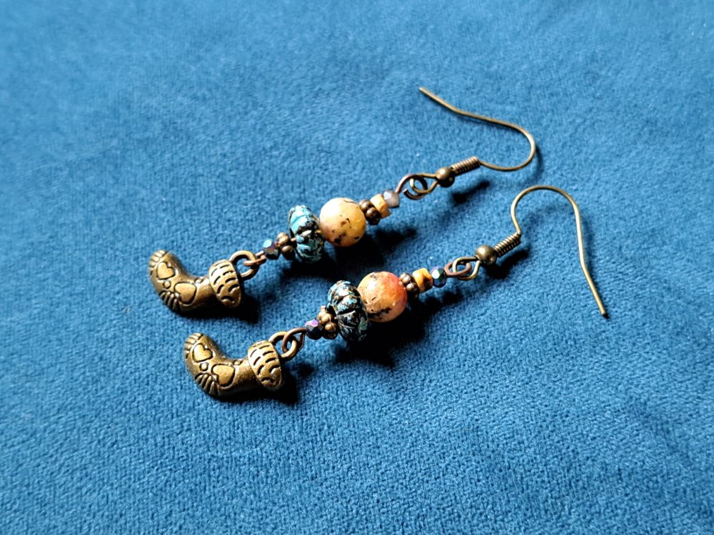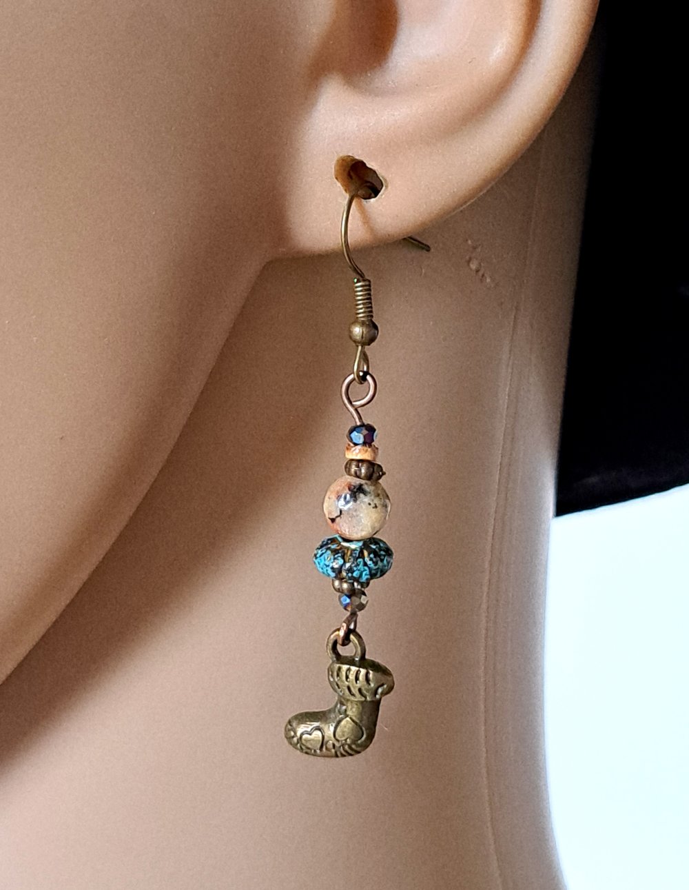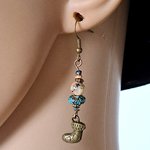 boucle d'oreille botte de noël, perles en verre et acrylique, crochets en métal bronze