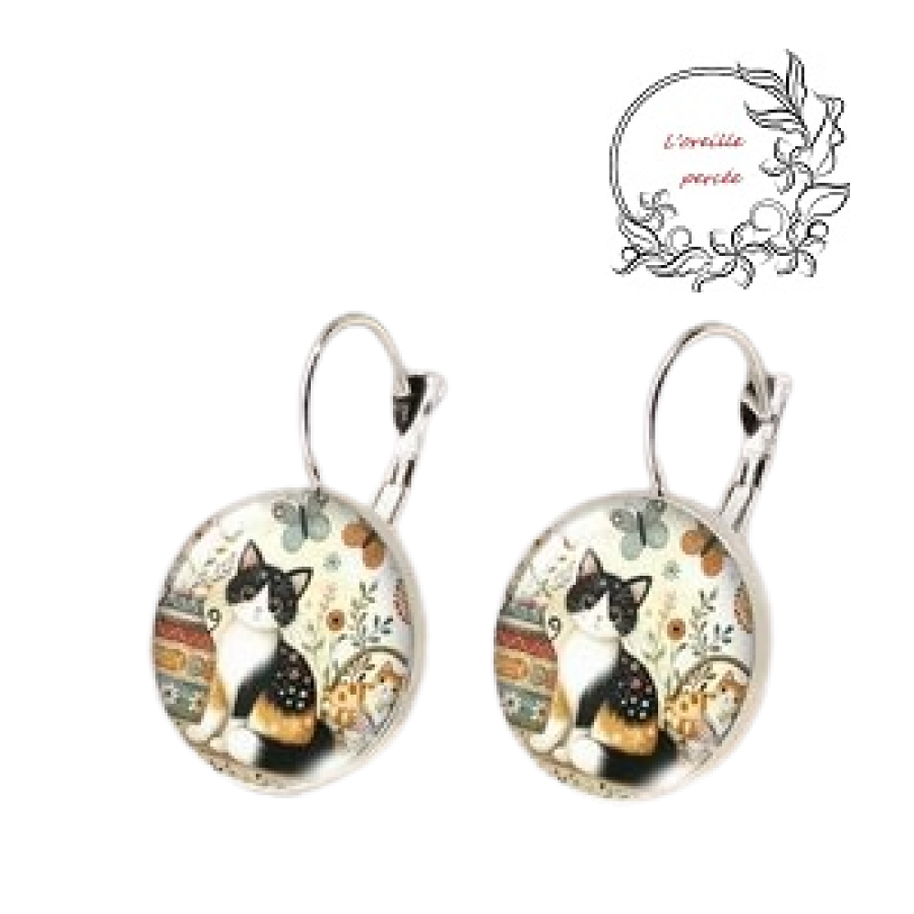 Jolie paire de boucle d'oreille réaliser avec des supports boucles d'oreilles en acier inoxydable et rehausser de son cabochon dôme en verre.