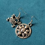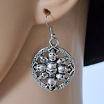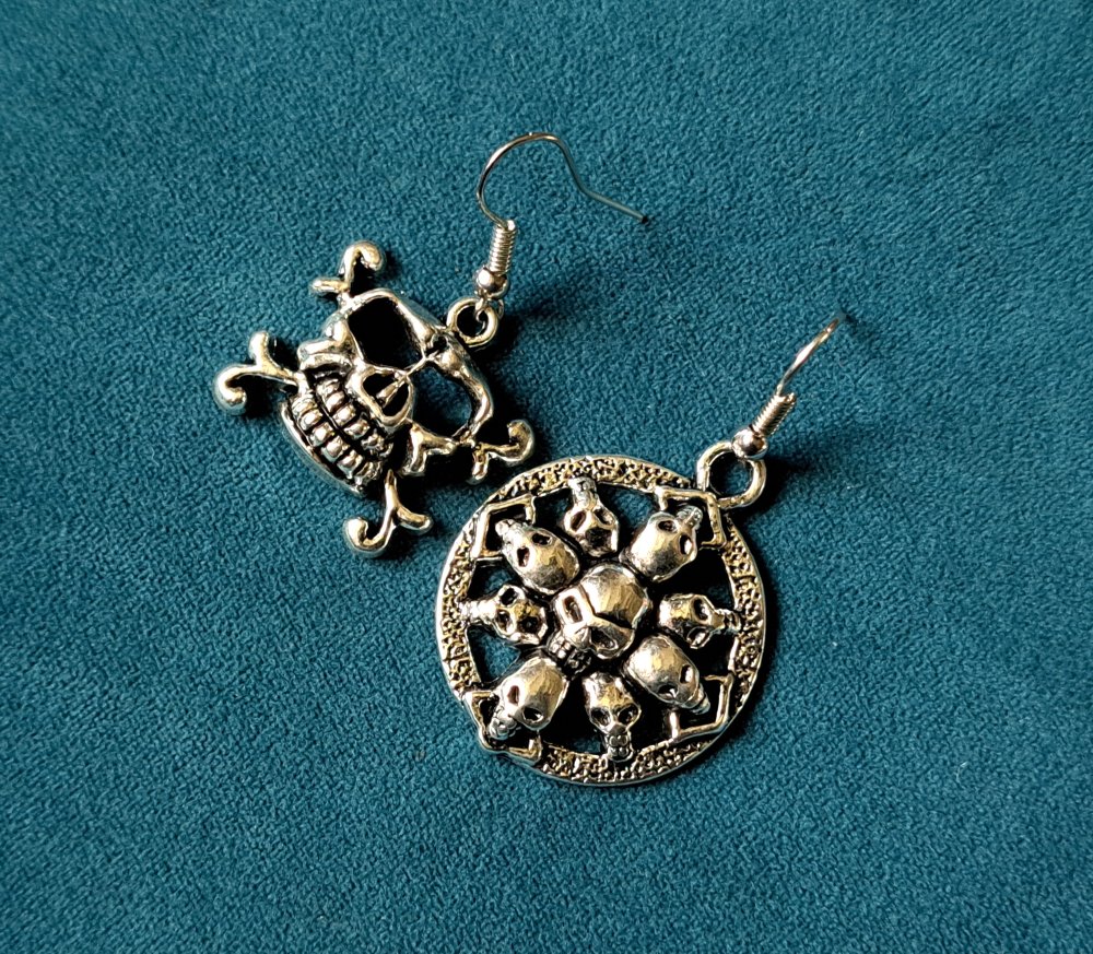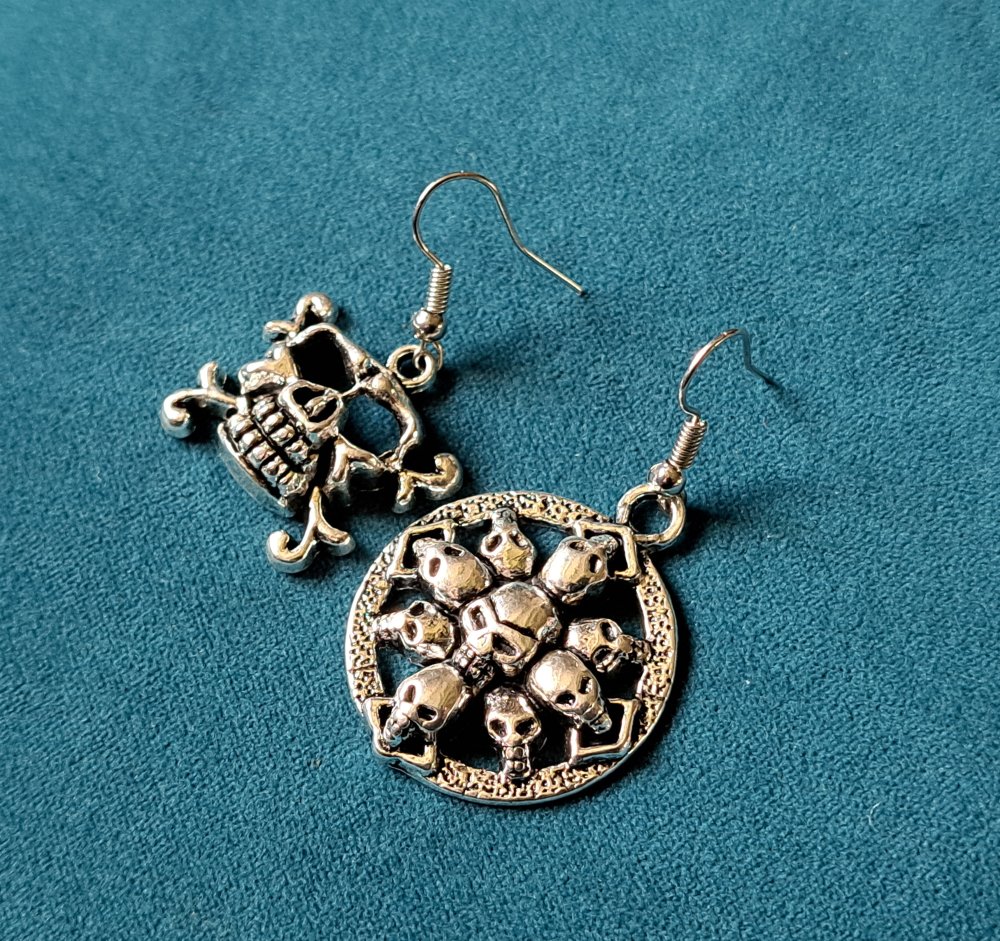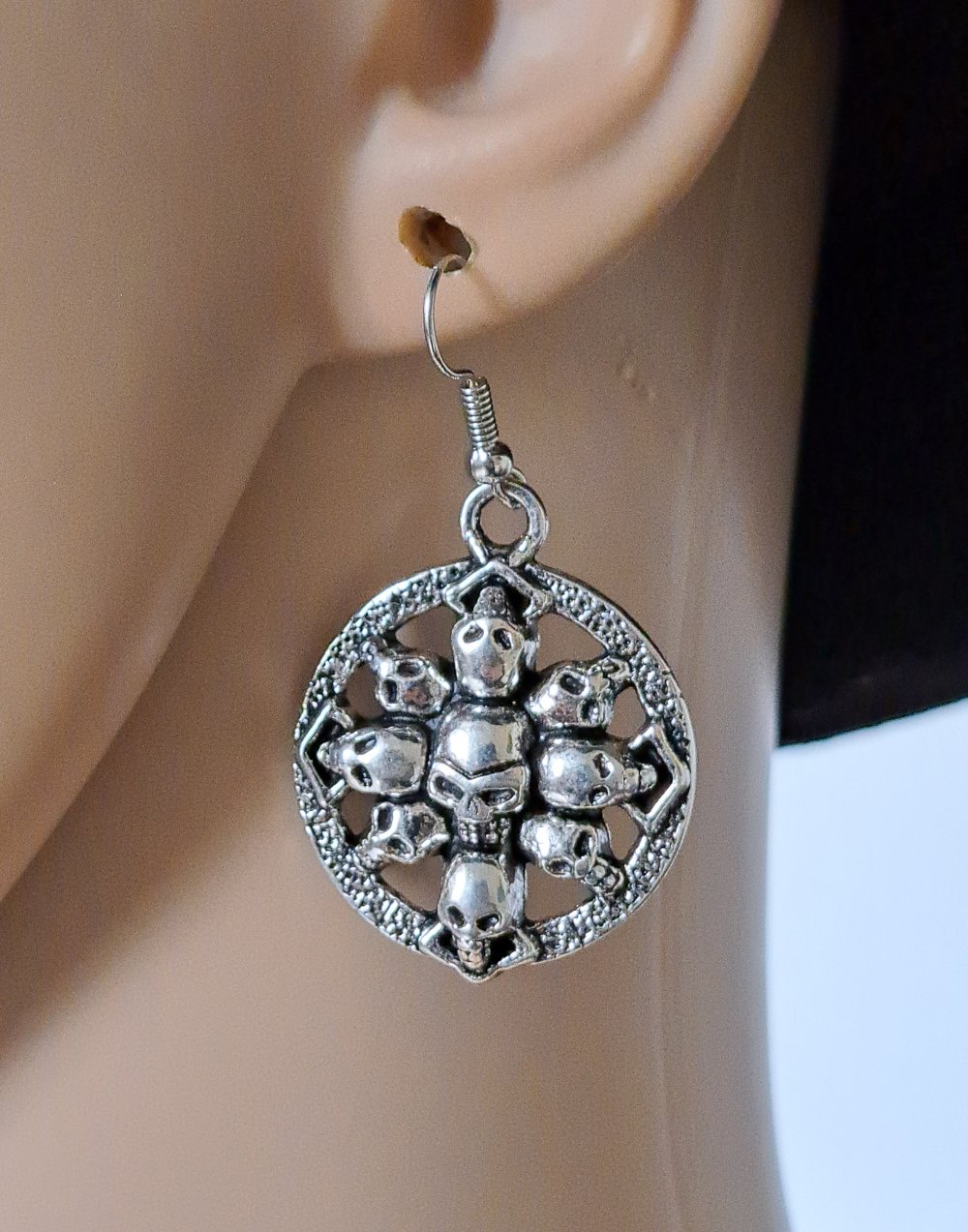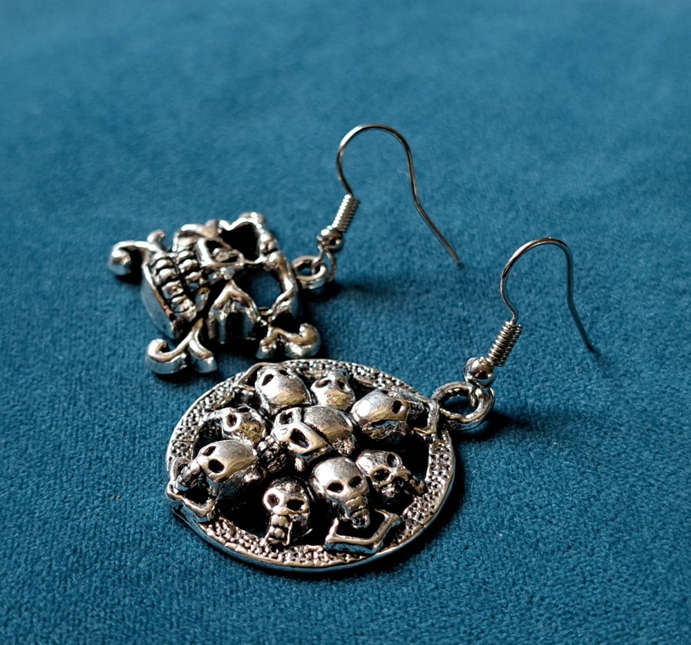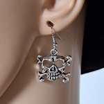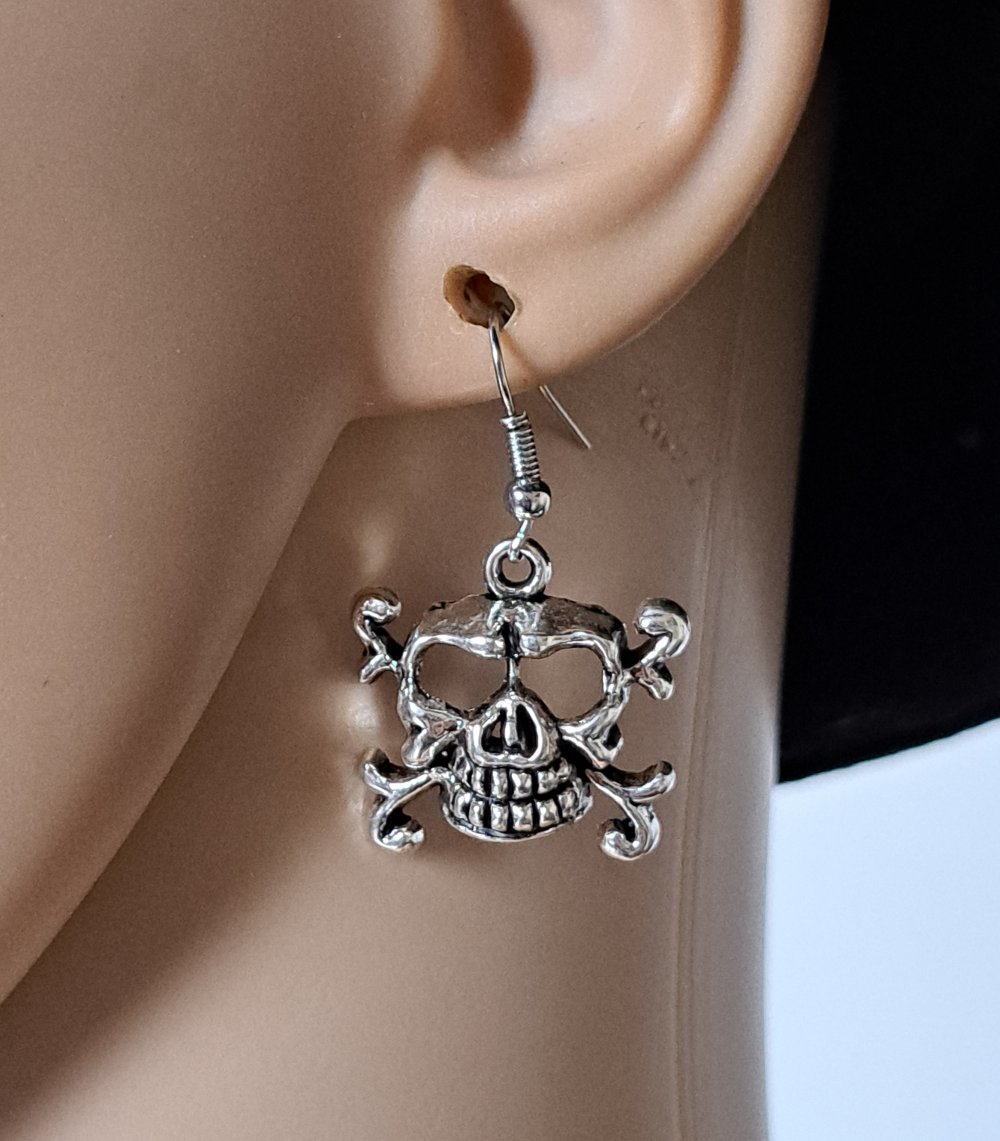 boucle d'oreille gothique tête de mort, crochets en métal acier Inoxydable argenté