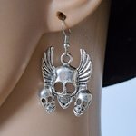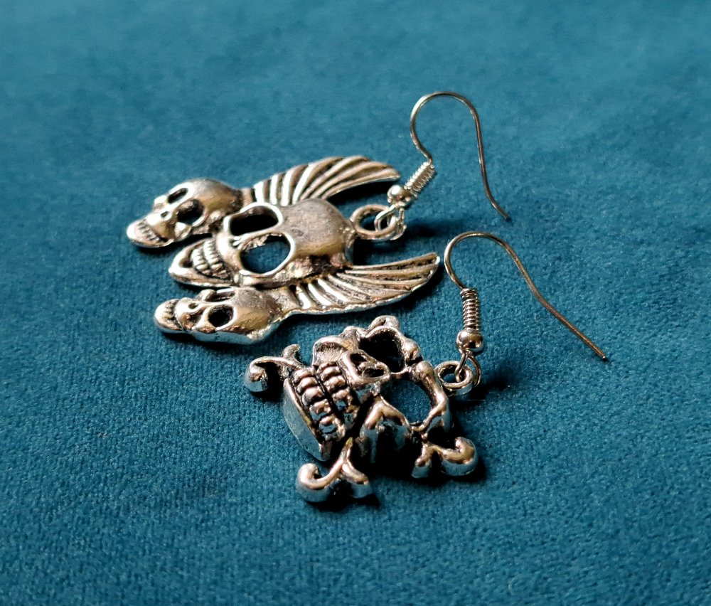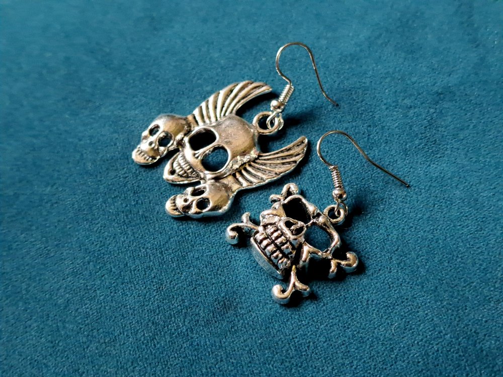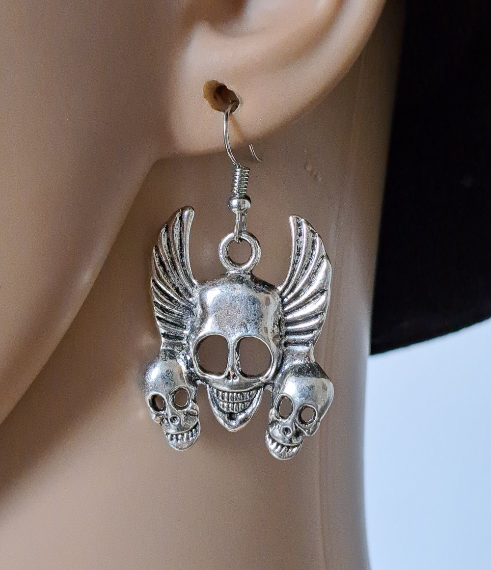 boucle d'oreille gothique tête de mort, crochets en métal acier Inoxydable argenté