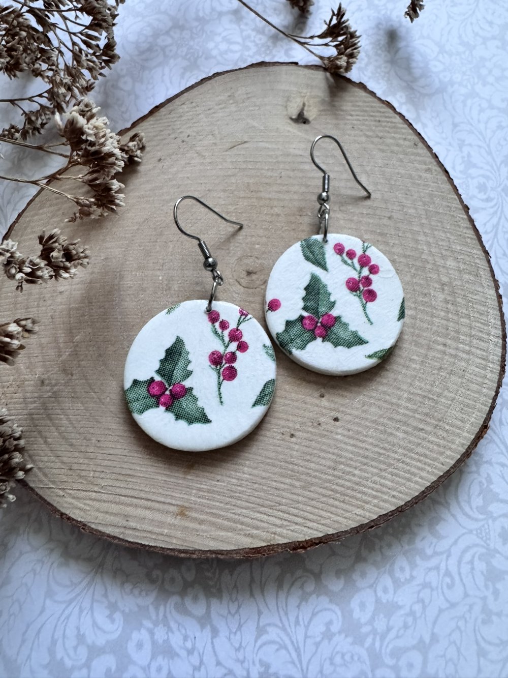 Cette paire est faite à la main. J'ai utilisé de la pâte autodurcissante pour la base puis j'y ai apposé une serviette en papier avec du vernis.