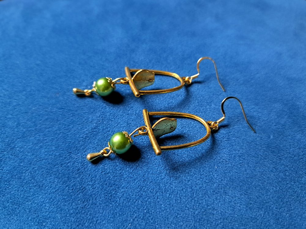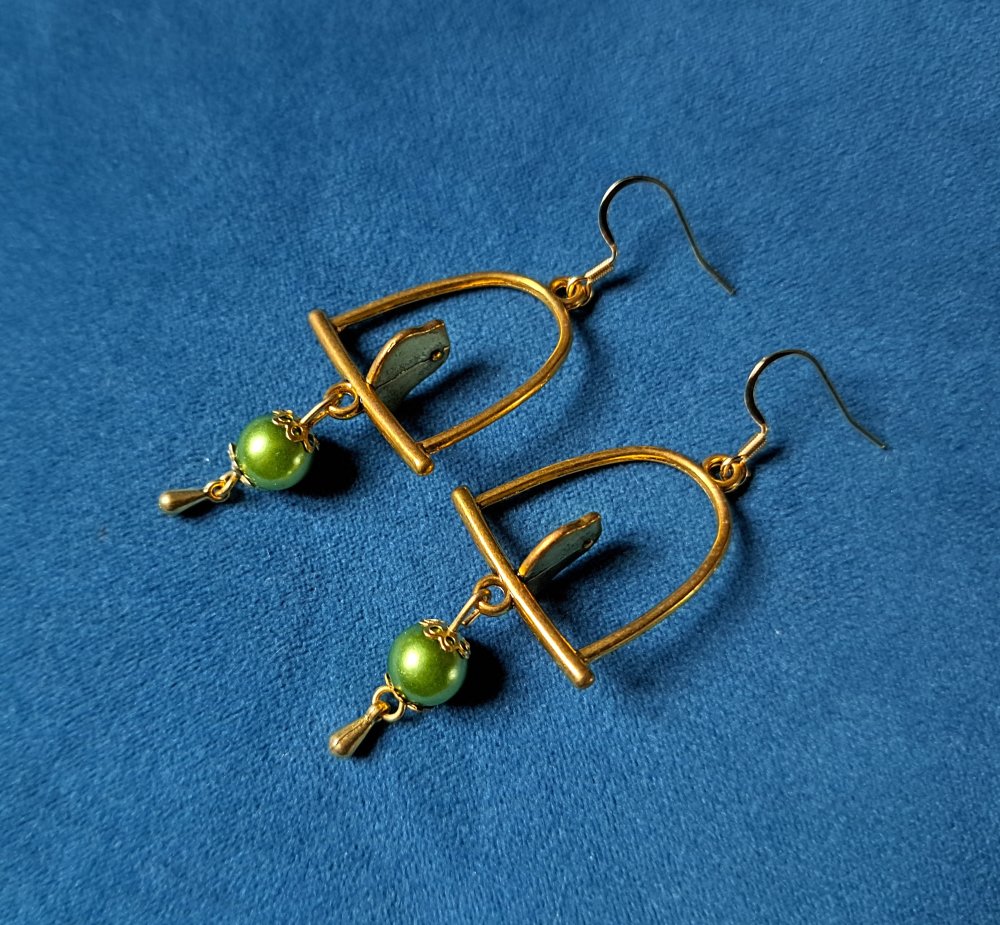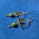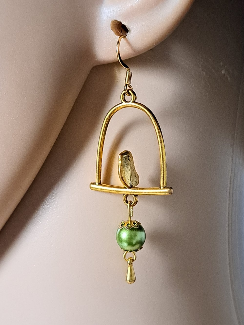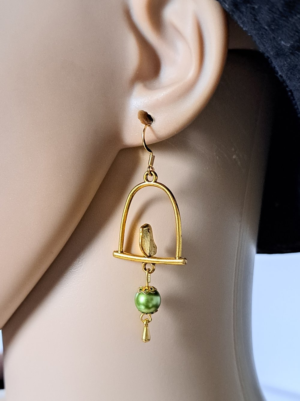 boucle d'oreille oiseaux, perles en acrylique verte brillante, crochet en métal acier Inoxydable doré ancien