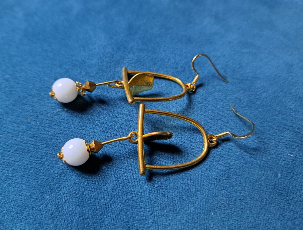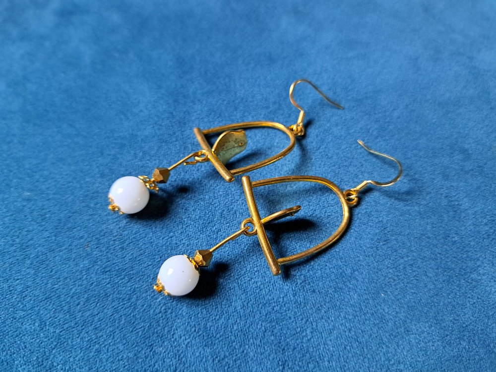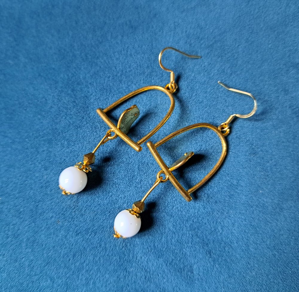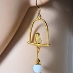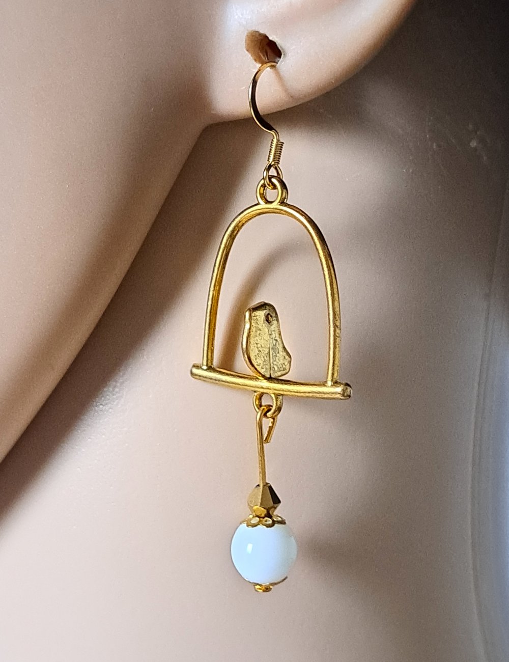 boucle d'oreille oiseaux, perles en verre blanche, crochet en métal acier Inoxydable doré ancien