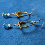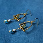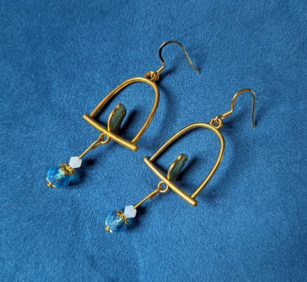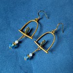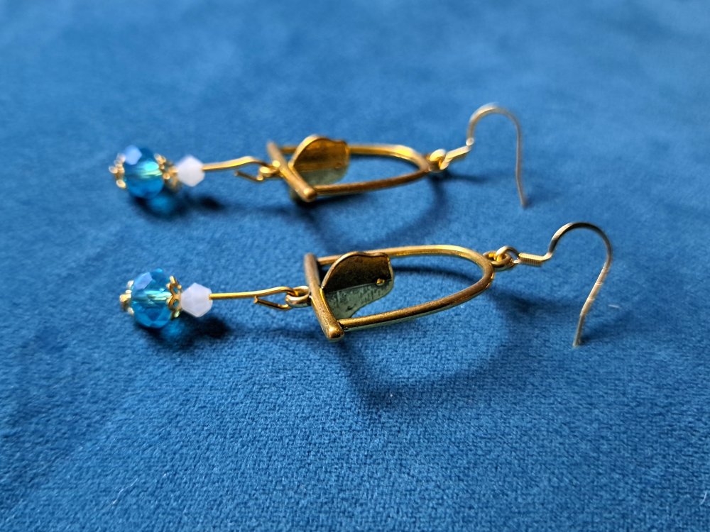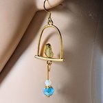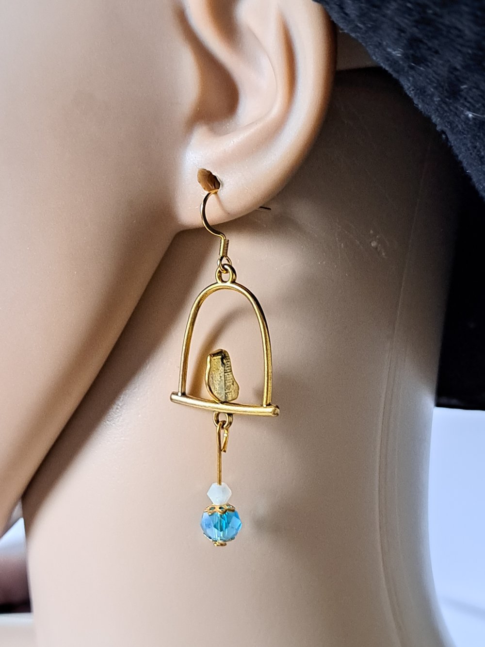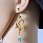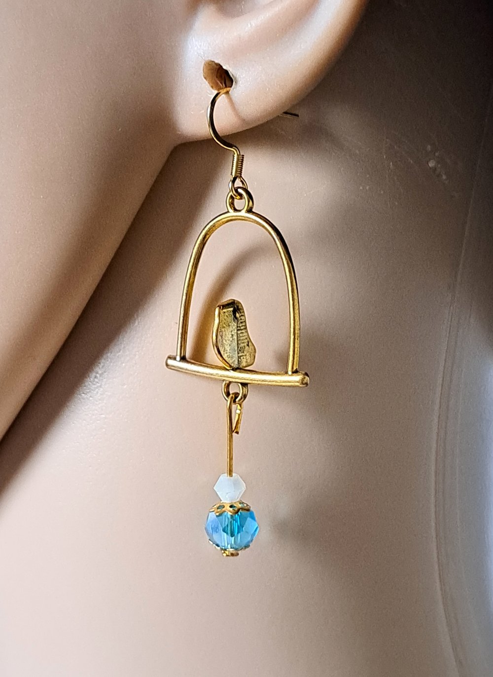 boucle d'oreille oiseaux, perles en verre bleu clair à facette, blanc, crochet en métal acier Inoxydable doré ancien