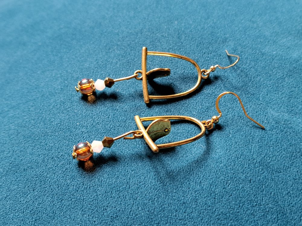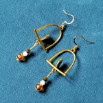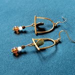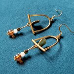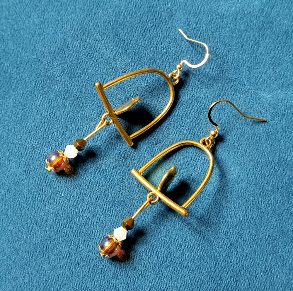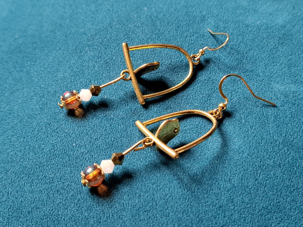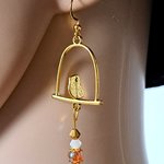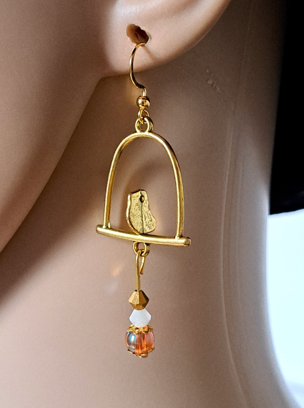 boucle d'oreille oiseaux, perles en verre orange transparente, blanche, crochet en métal acier Inoxydable doré ancien