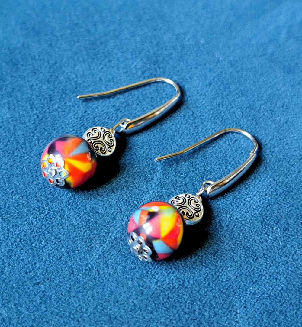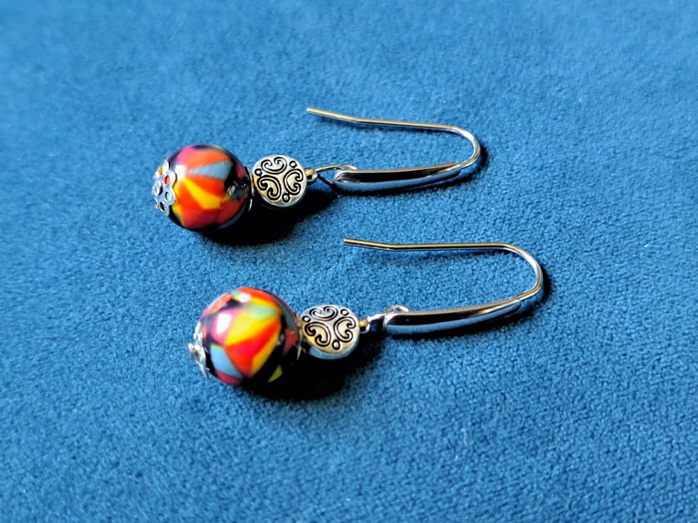 boucle d'oreille perles en acrylique rouge, jaune, noir, bleu, crochets en métal acier Inoxydable argenté