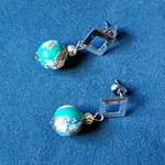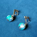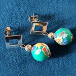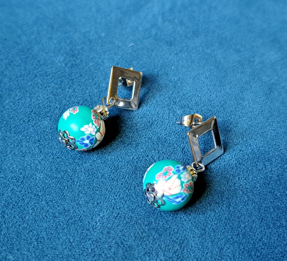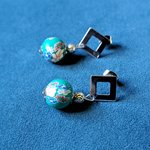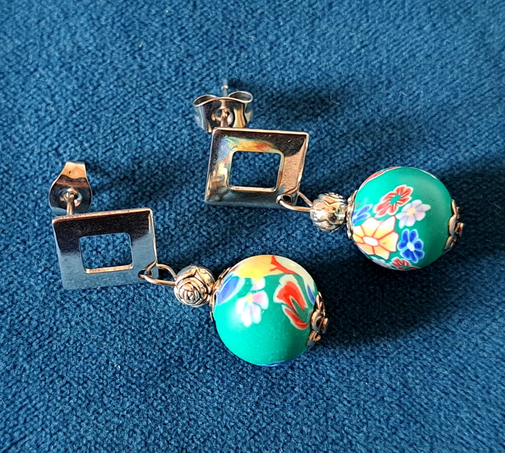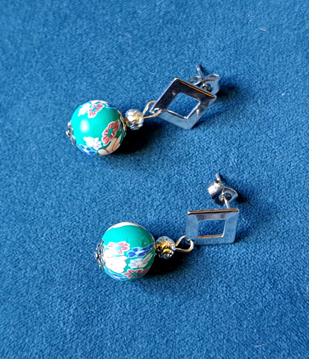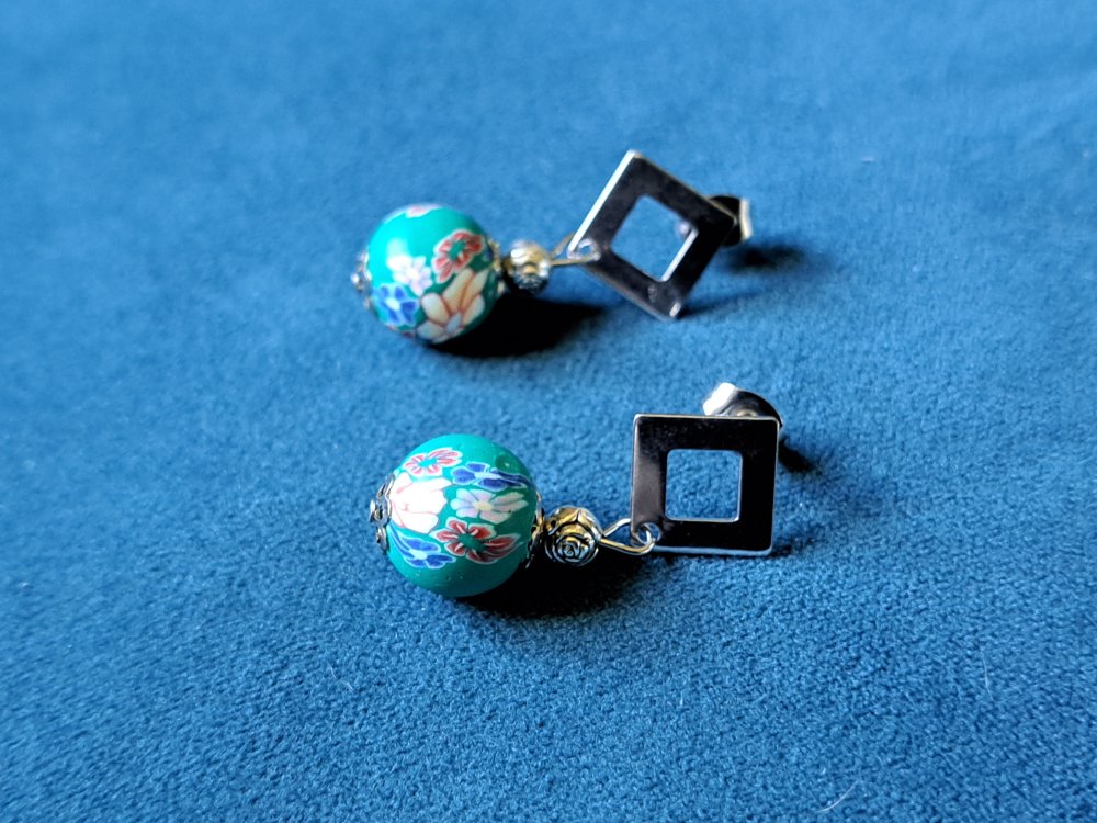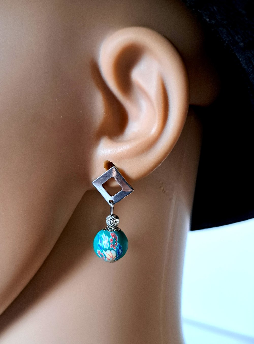boucle d'oreille perles en acrylique vert, multicolore, crochets puce carré en métal acier Inoxydable argenté