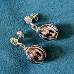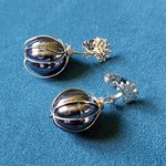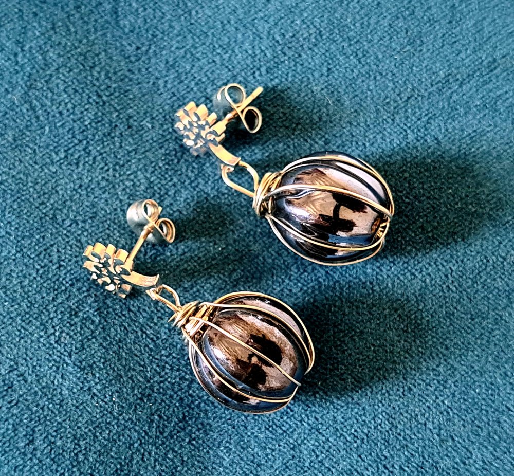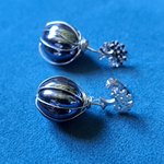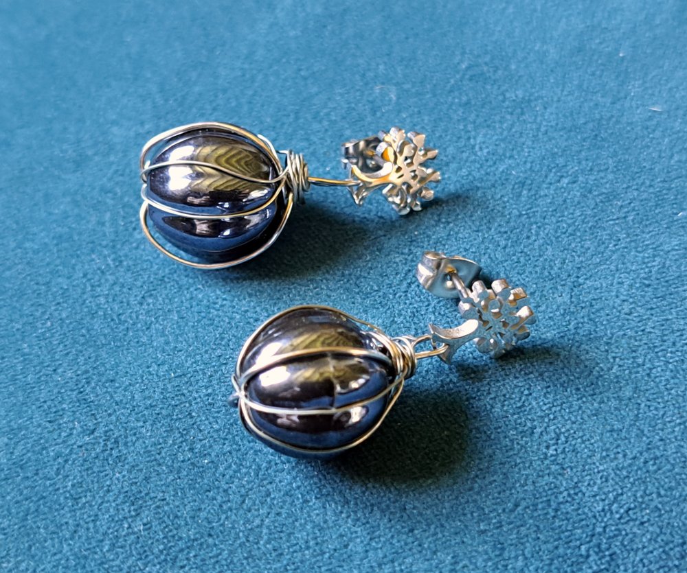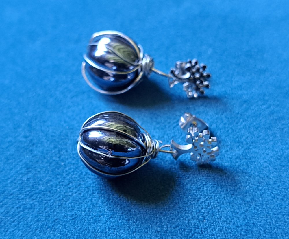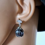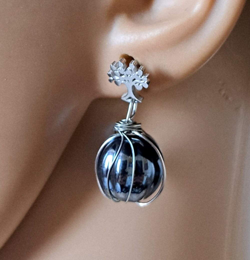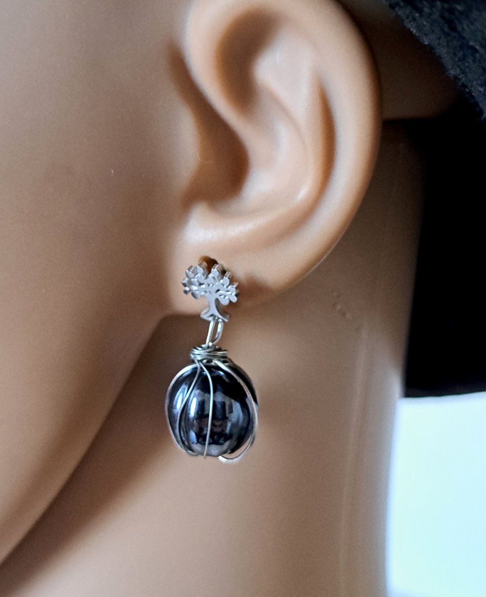 boucle d'oreille perles en verre émaillé noir brillant, crochet arbre en métal acier Inoxydable argenté