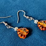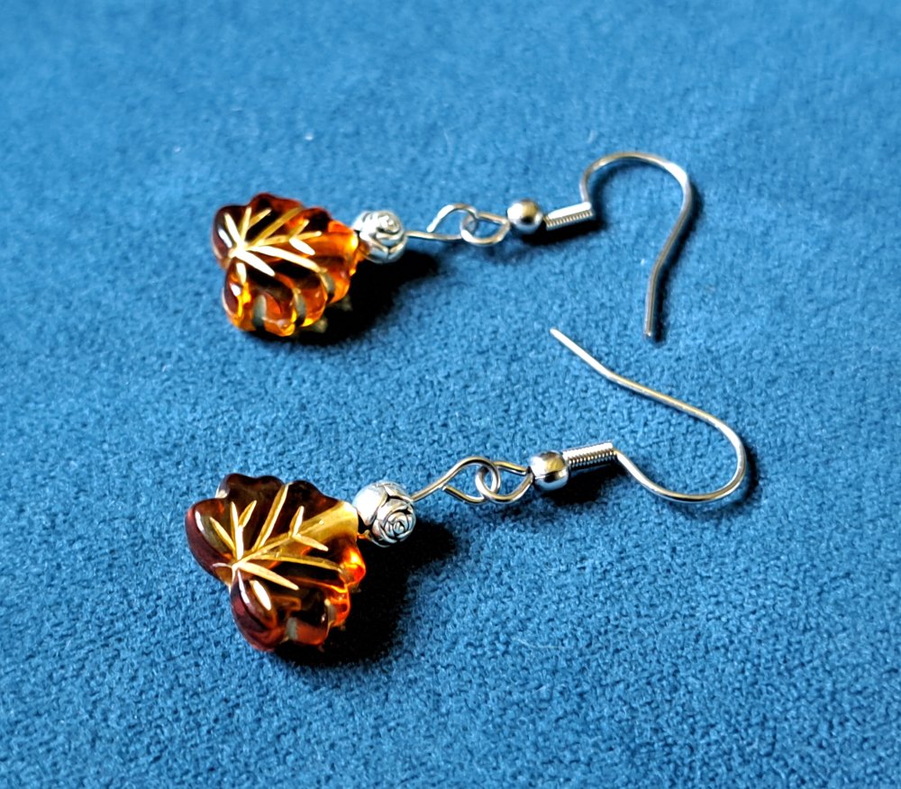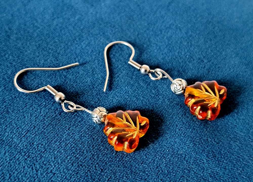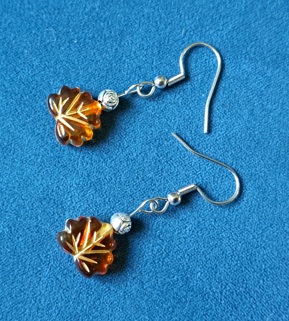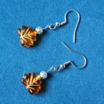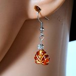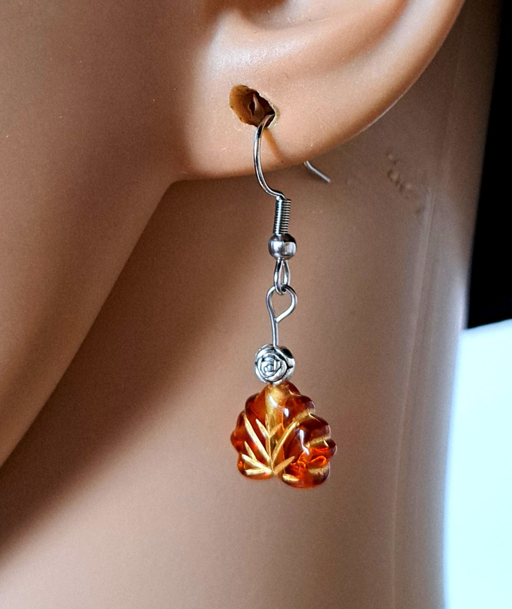 boucle d'oreille perles feuille acrylique bronze orangé, doré, crochets en métal acier Inoxydable argenté
