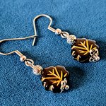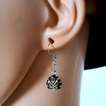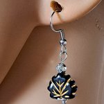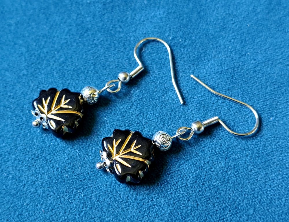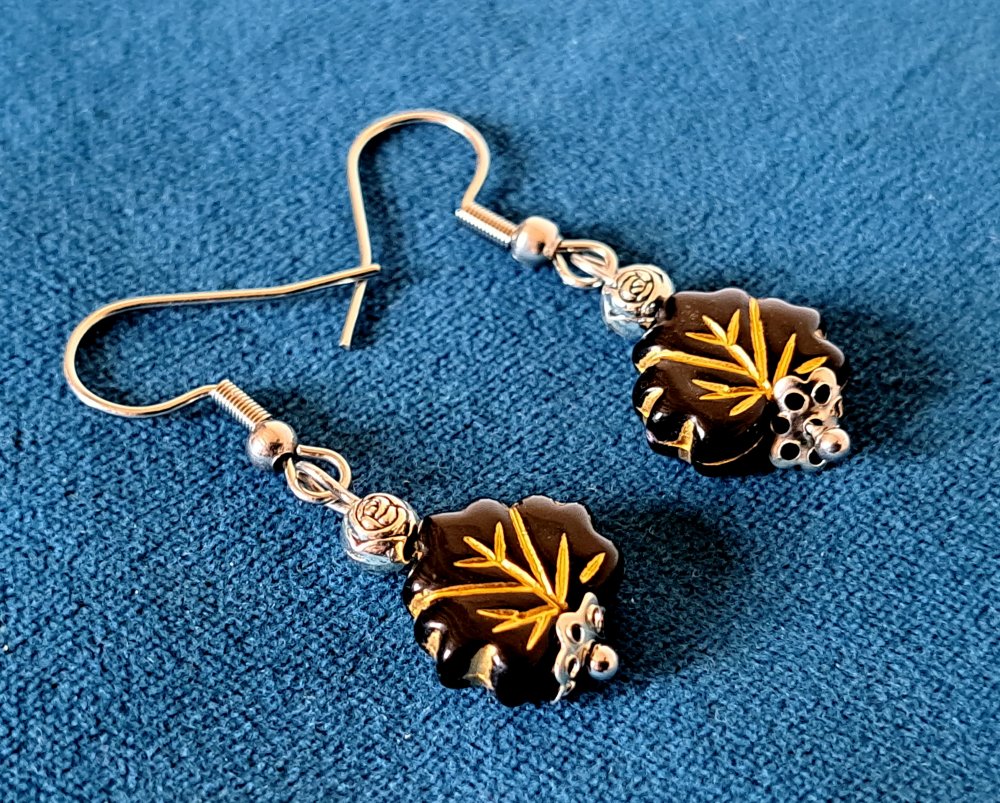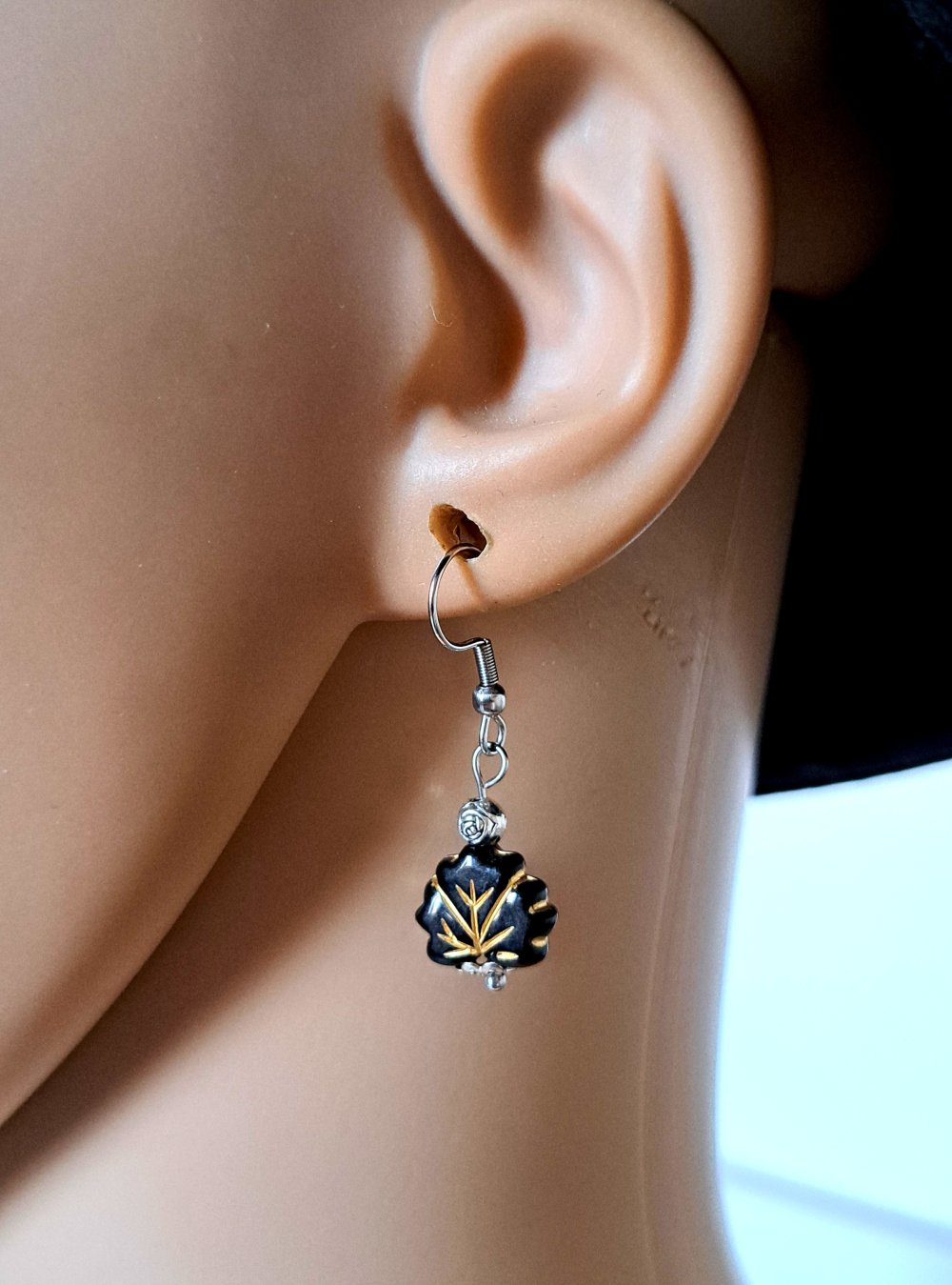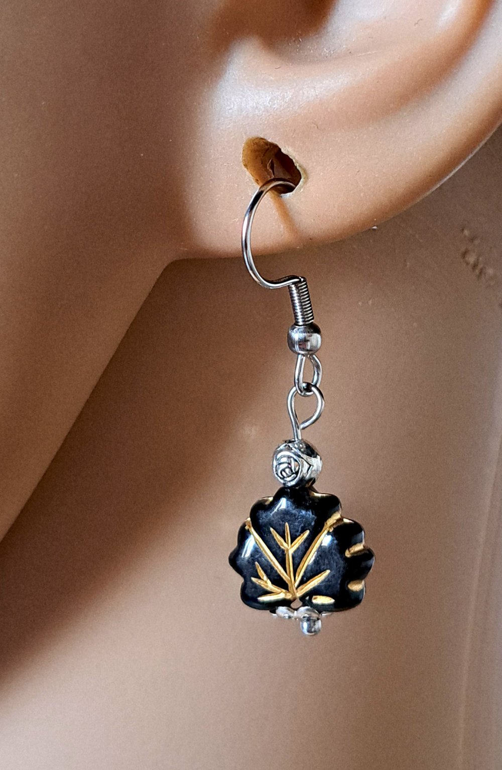 boucle d'oreille perles feuille acrylique noire, doré, crochets en métal acier Inoxydable argenté