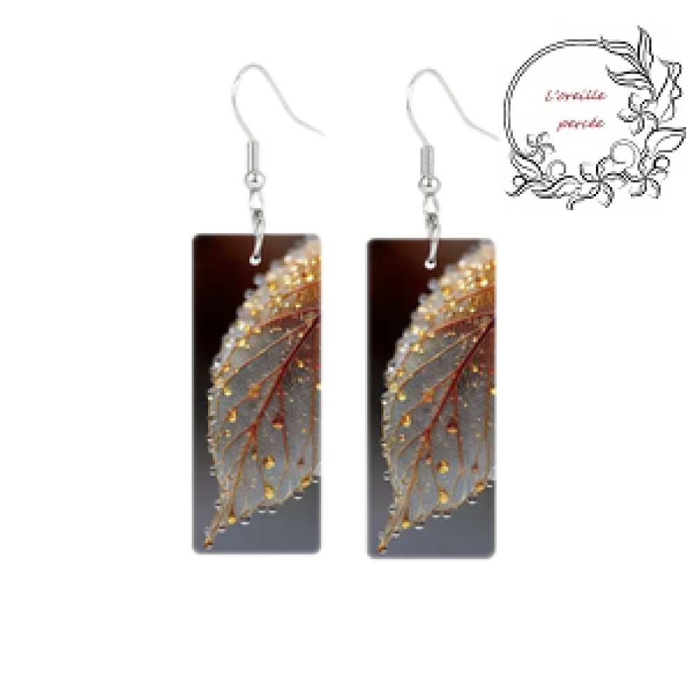 Jolie paire de boucle d'oreille rectangle avec motif mer.