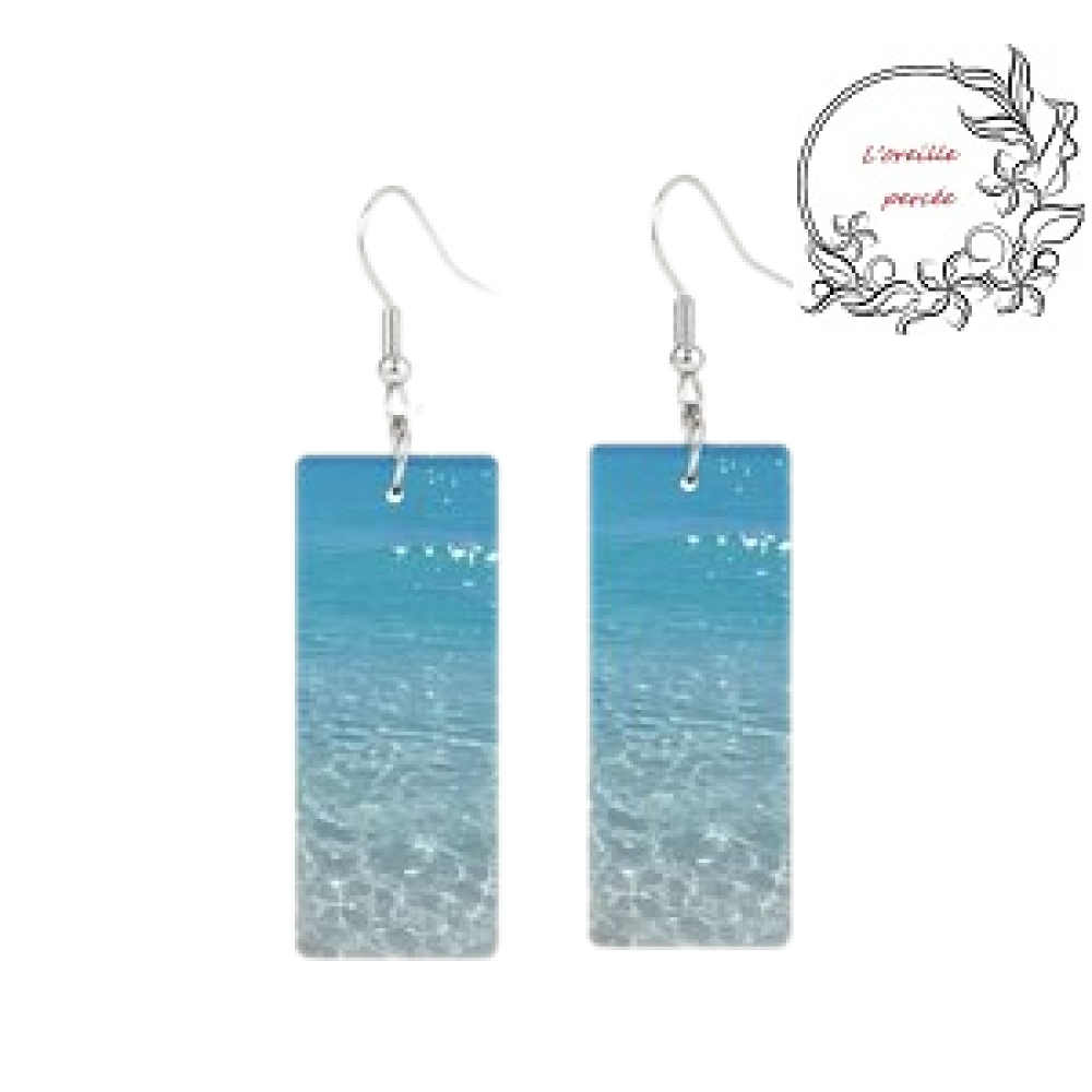 Jolie paire de boucle d'oreille rectangle avec motif mer.
