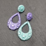 - Boucle d'oreilles modelé à la main en pâte polymère mauve et vert menthe