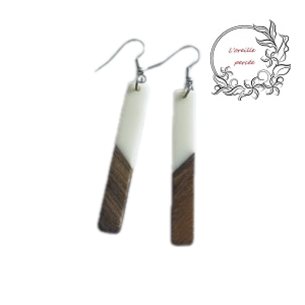 Boucle d'oreille tige bois et résine