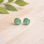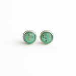Voici une paire de boucle d'oreille de couleur vert pailleté ,cabochon de 10mm et attache en argent 925 .