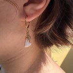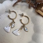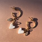 Créole dorée, cœur blanc nacré et charm œil — une boucle délicate et mystique, entièrement faite main.
