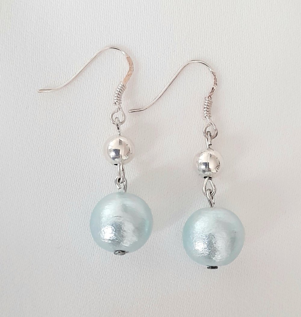Boucles d'oreilles argent 925 et perle en coton compressé laqué nacré