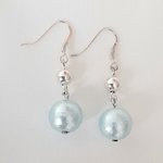 une perle d'une très jolie couleur bleu-gris clair de 12 mm en coton compressé pour la légèreté, laquée effet nacré (sans plomb) et reflets argentés, de la marque japonaise Miyuki ,