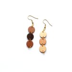 Paire de boucles d'oreilles pendantes en bois, formée par trois ronds de taille identiques