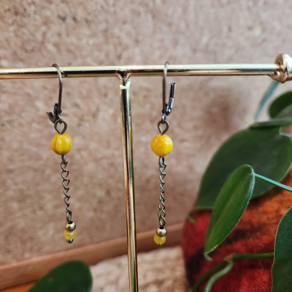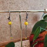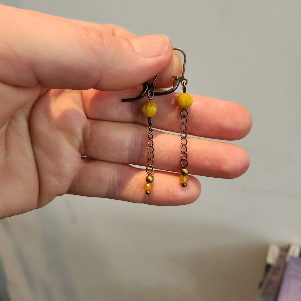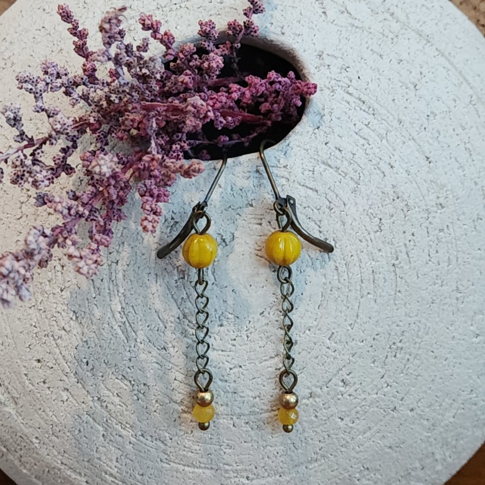 boucles d'oreille bronze perles tchèque, pierre teintée