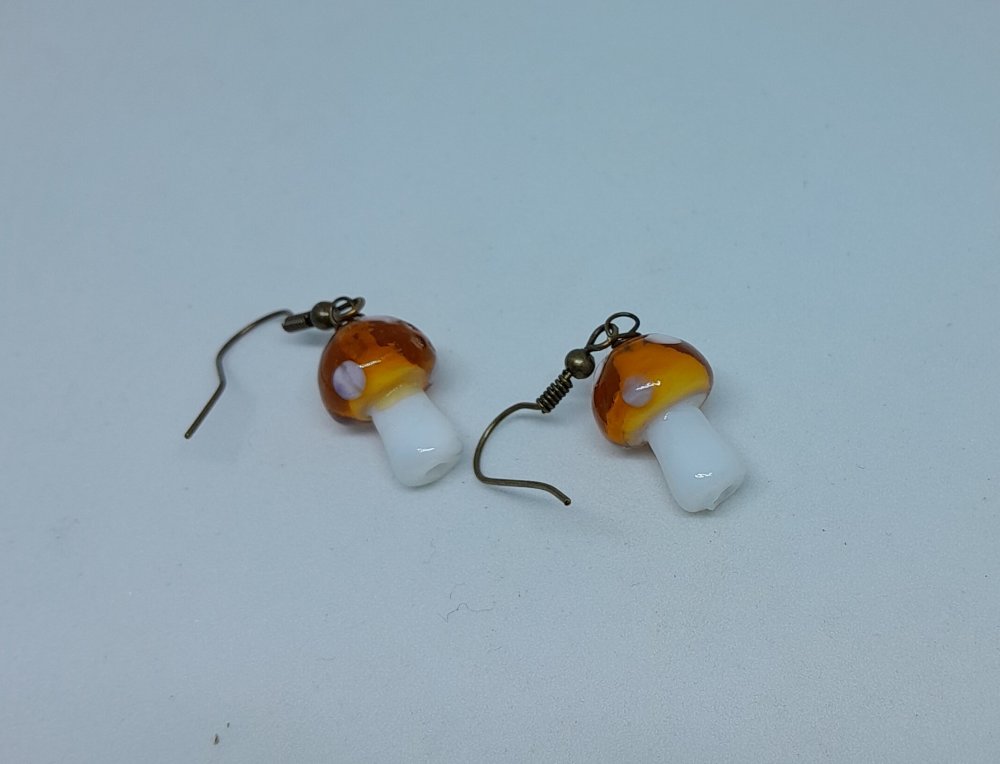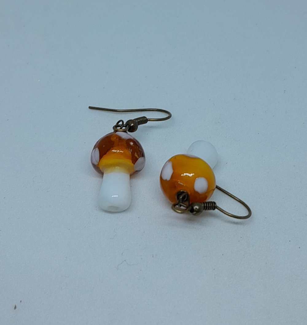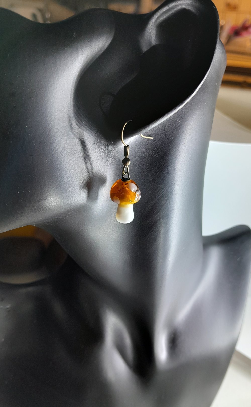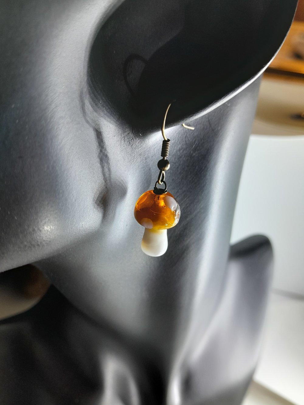 Jolies et rigolotes boucles d'oreille en forme de champignons en verre soufflé, faites à la main