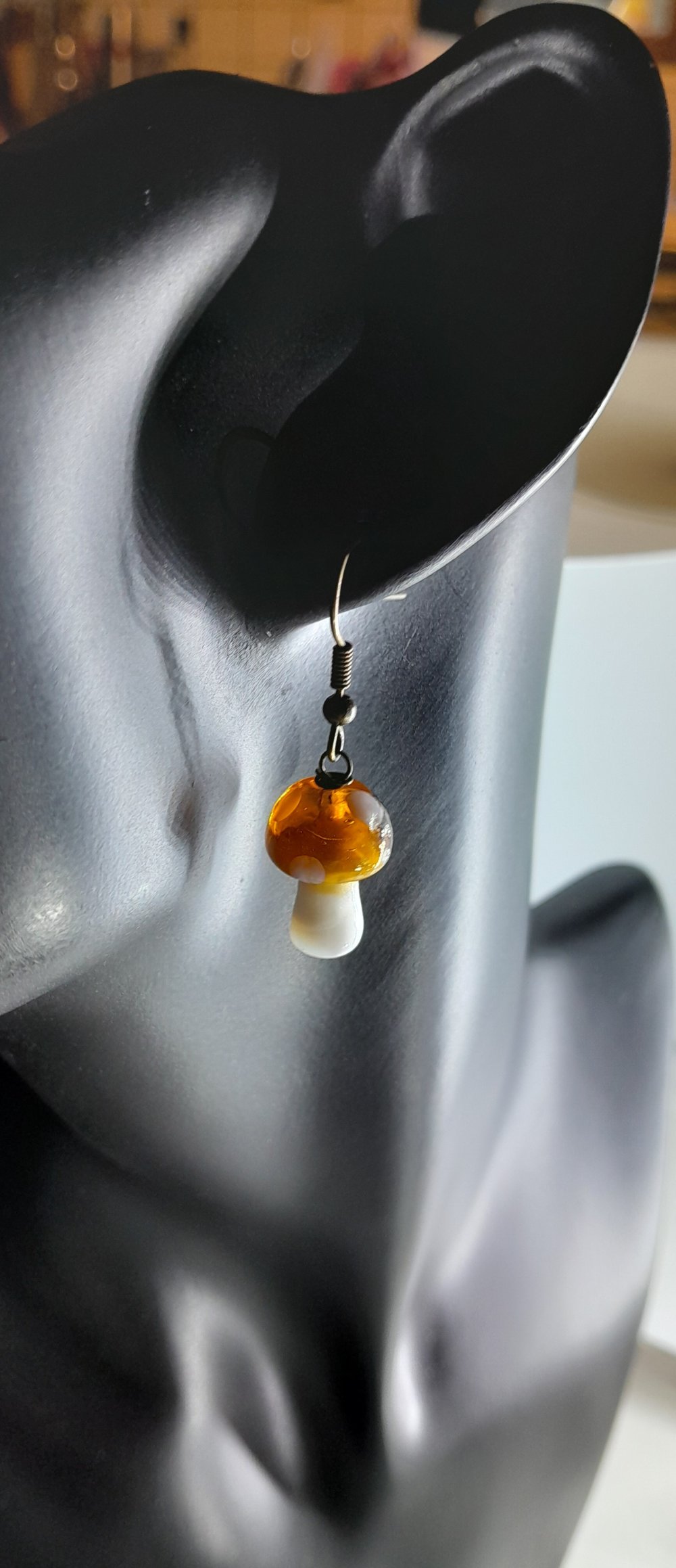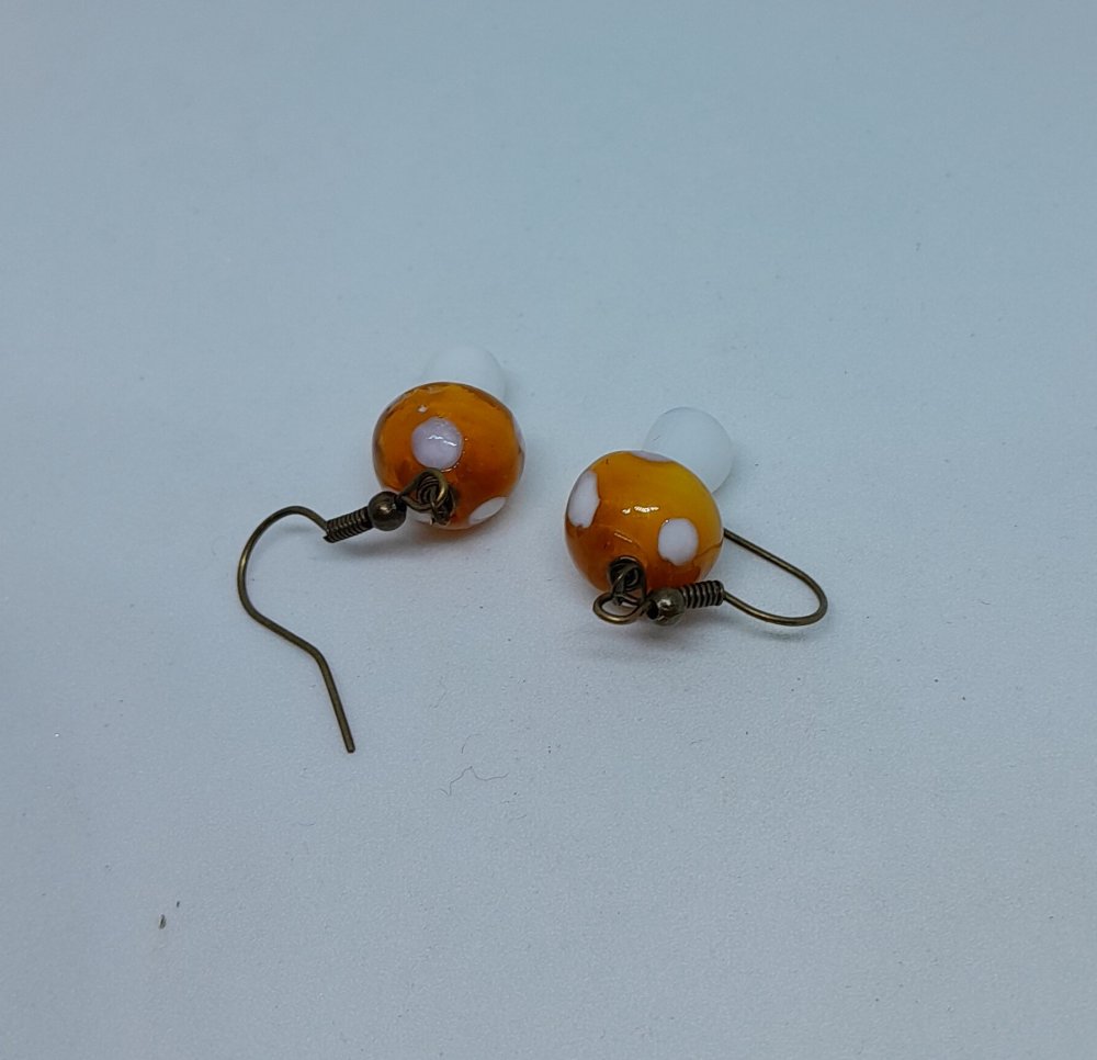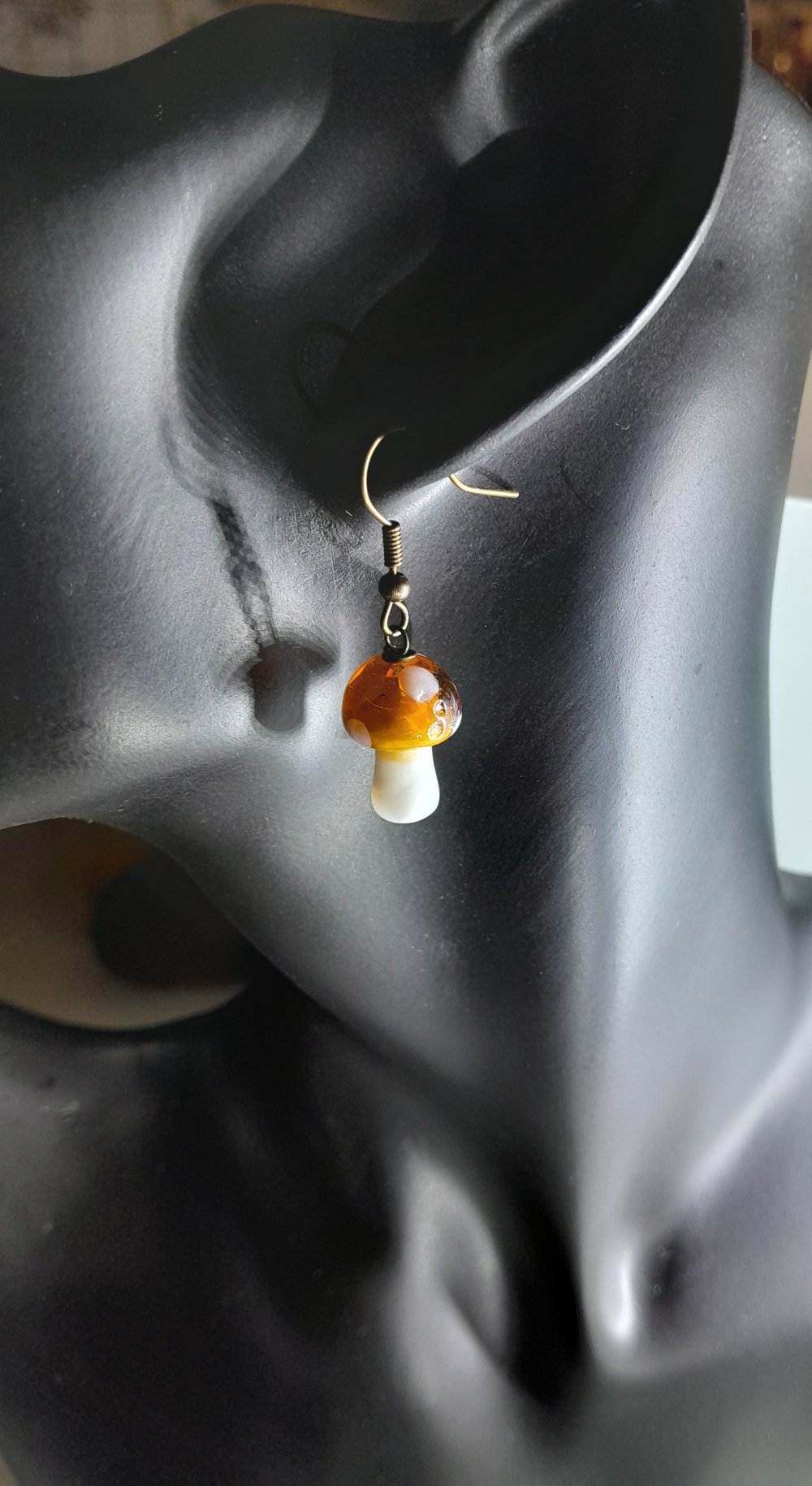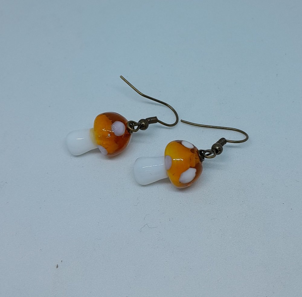 Jolies et rigolotes boucles d'oreille en forme de champignons en verre soufflé, faites à la main