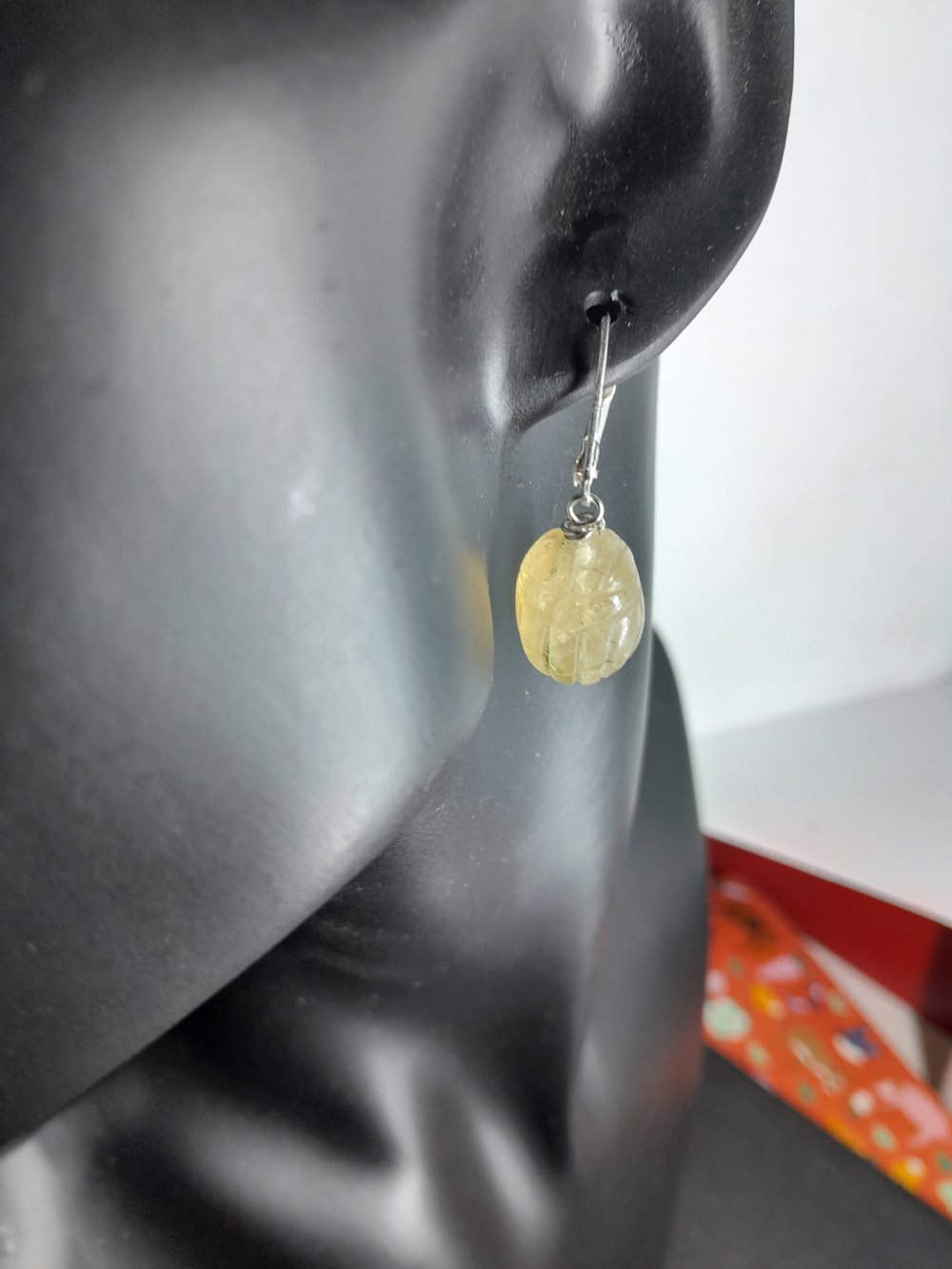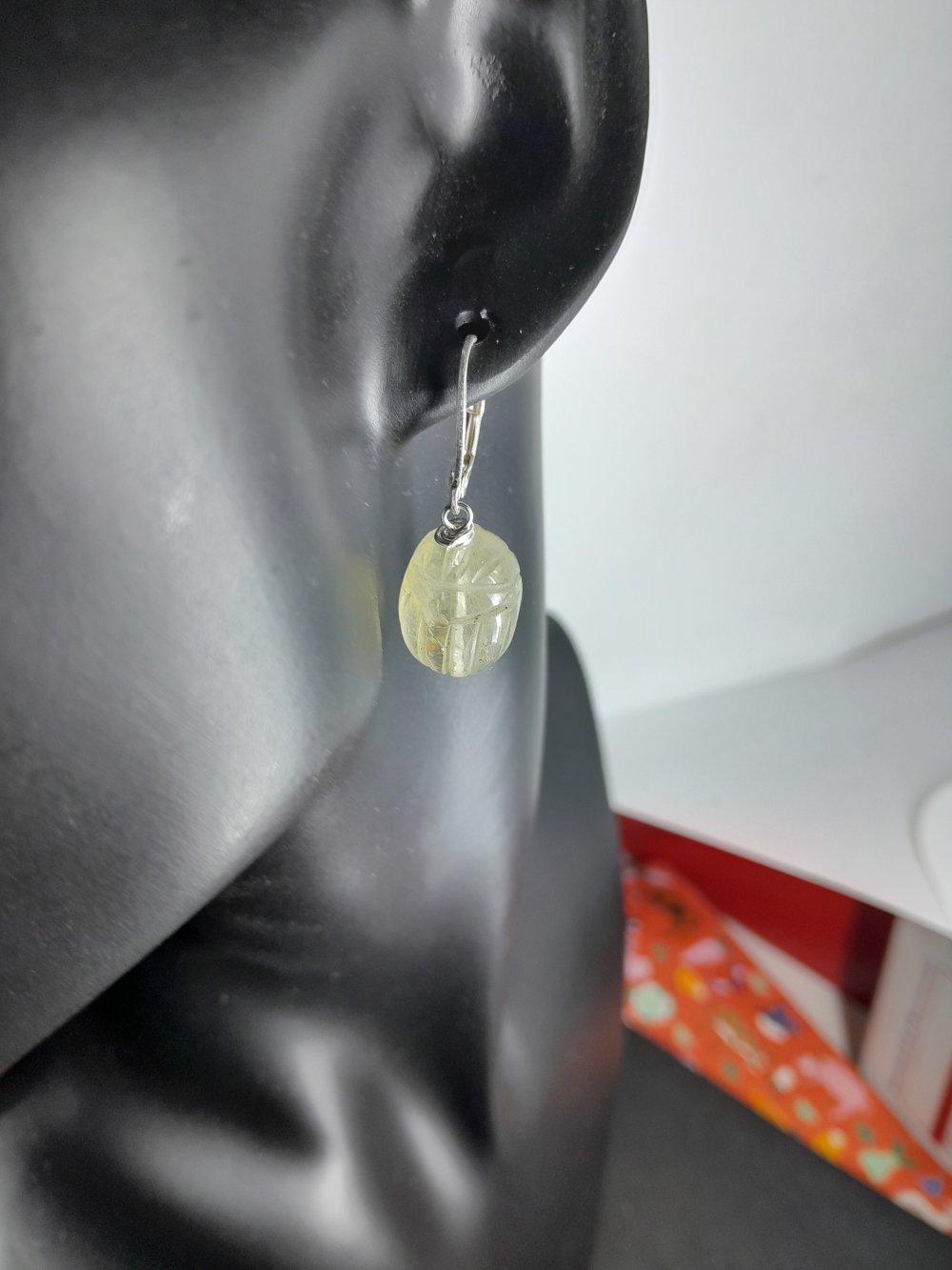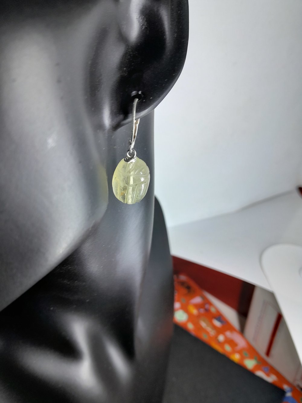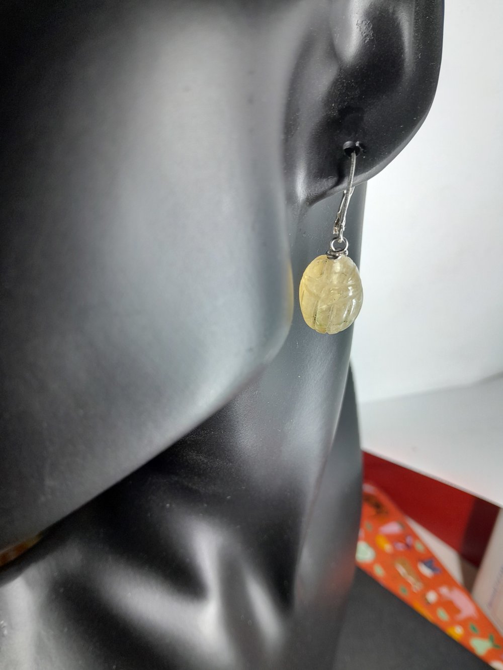 boucles d'oreille dormeuses en argent 925 (poinçon) avec citrines gravées en forme de scarabée 16x12 mm