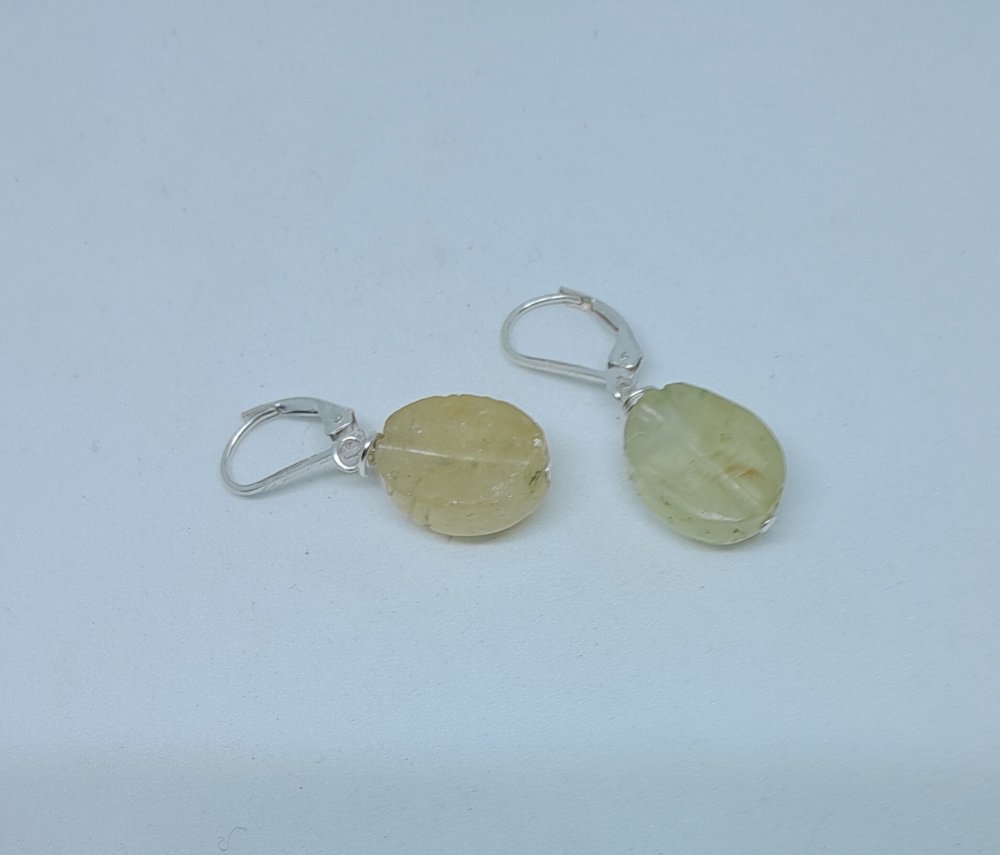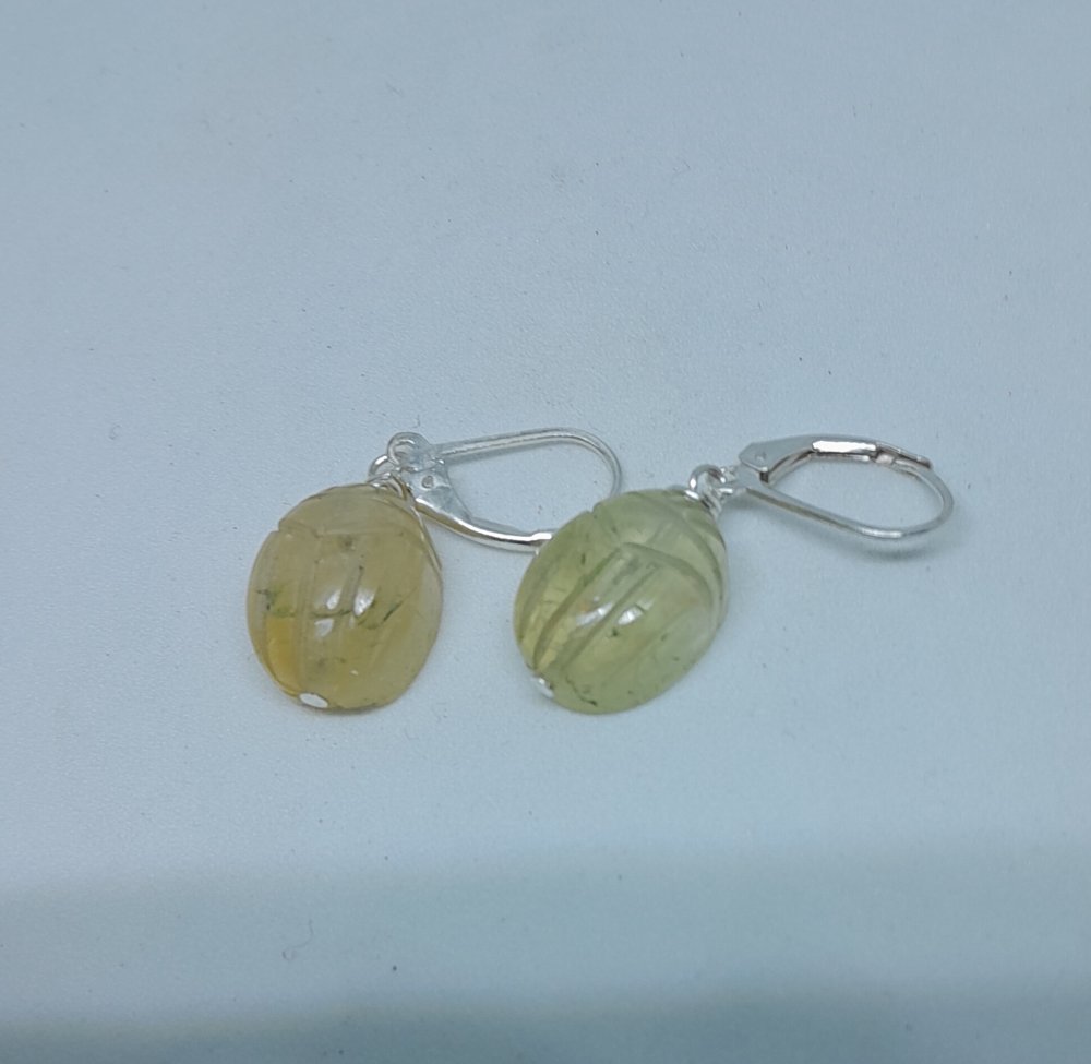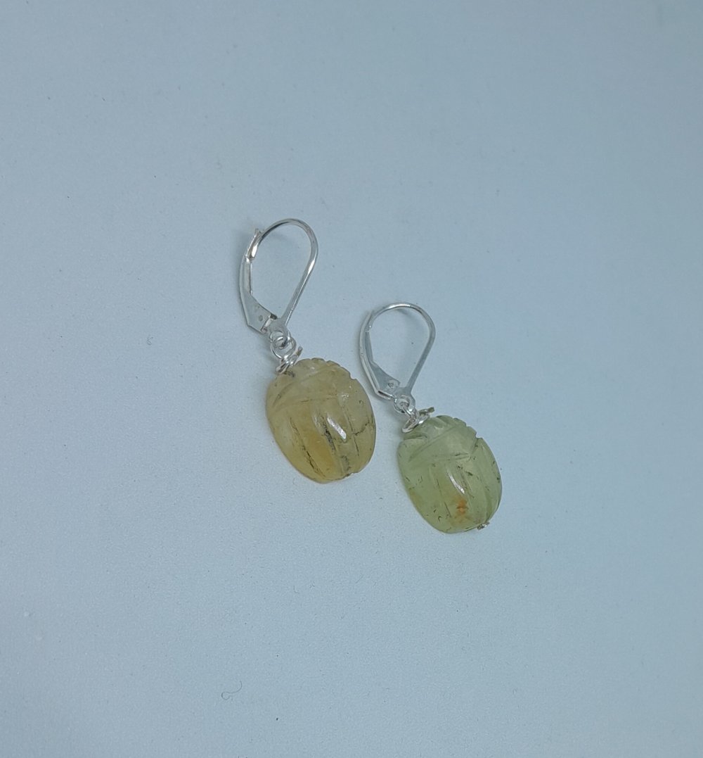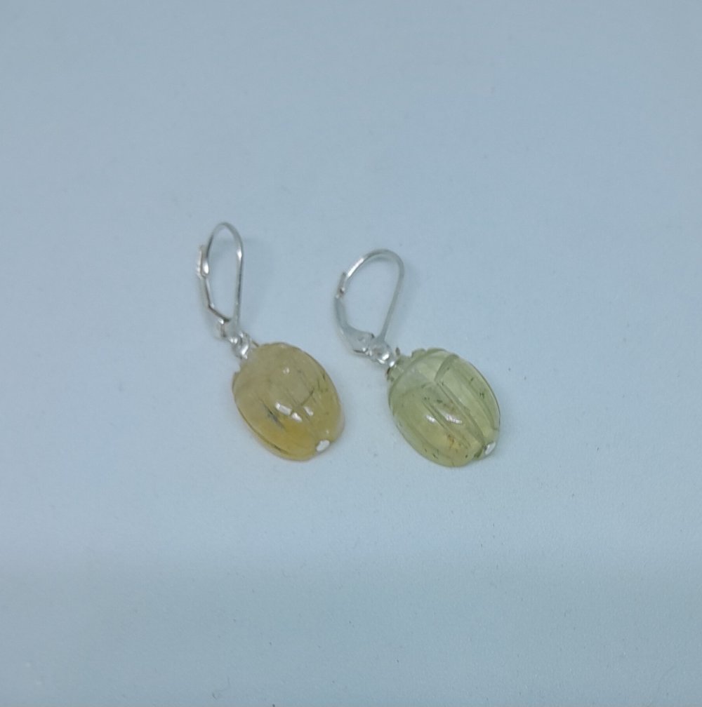 boucles d'oreille dormeuses en argent 925 (poinçon) avec citrines gravées en forme de scarabée 16x12 mm