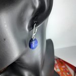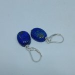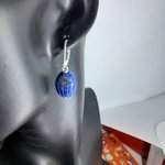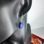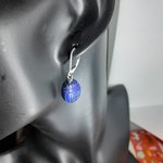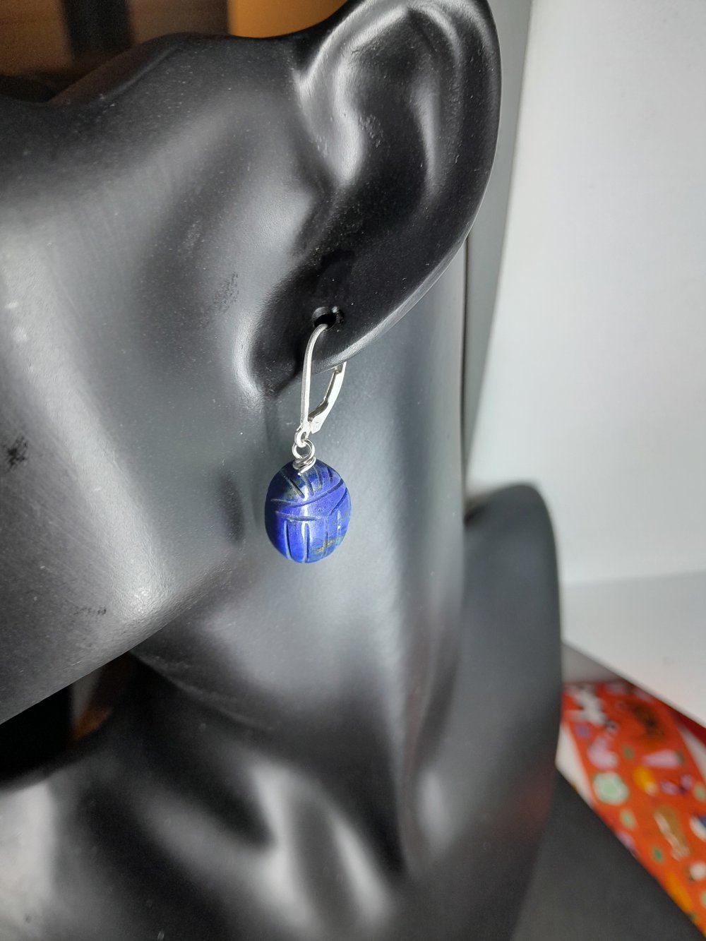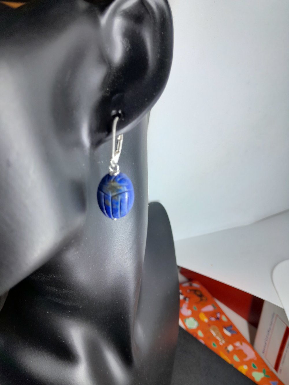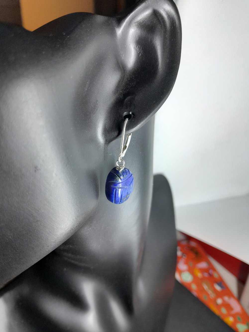 boucles d'oreille dormeuses en argent 925 (poinçon) avec lapis-lazuli gravés en forme de scarabée 16x12 mm