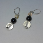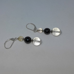 boucles d'oreille dormeuses en argent 925 (poinçon) avec cristal de roche 10 et 6 mm et magnétite 8 mm