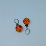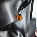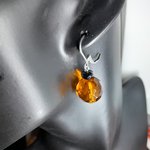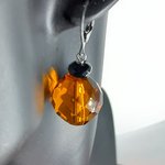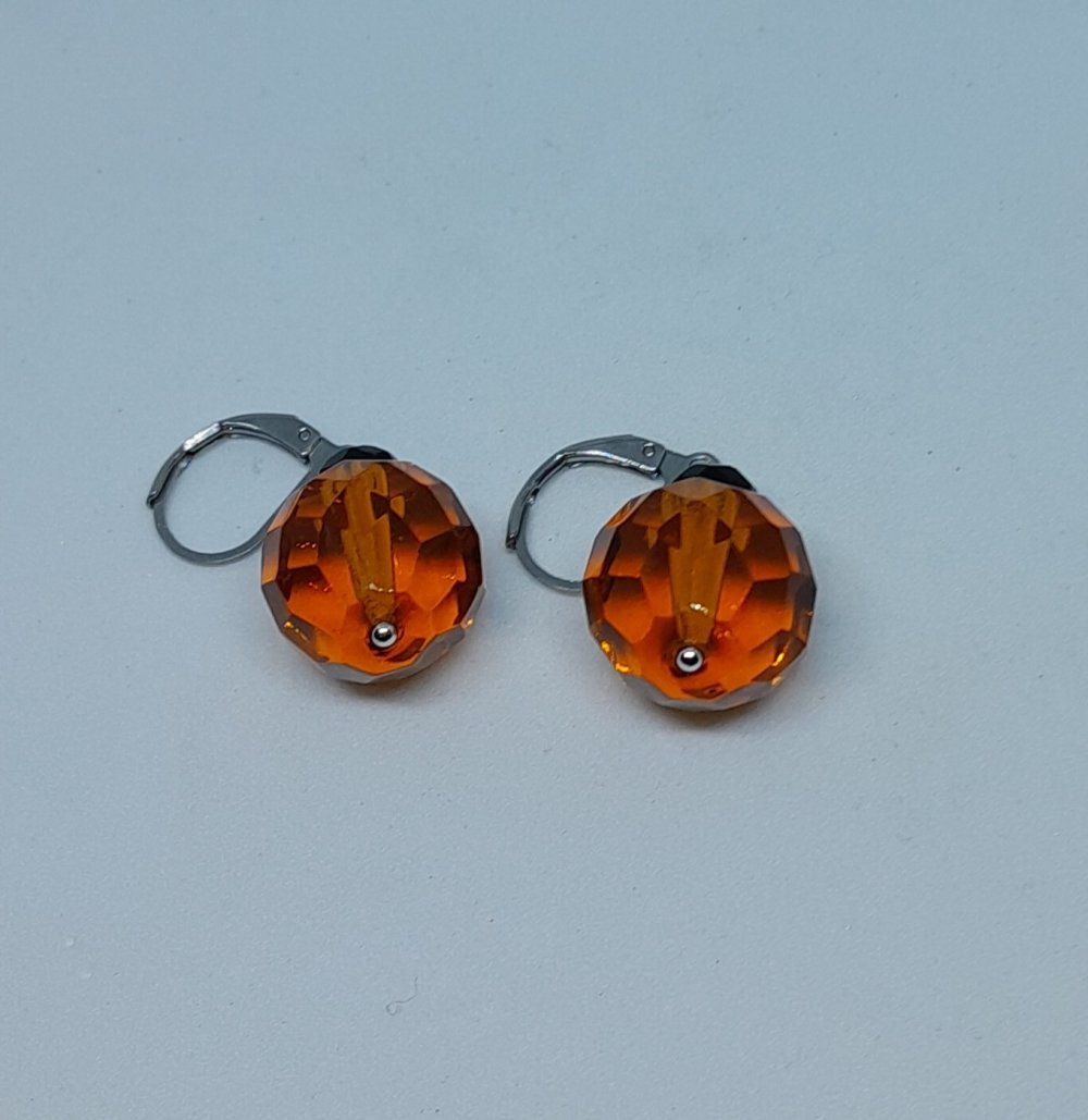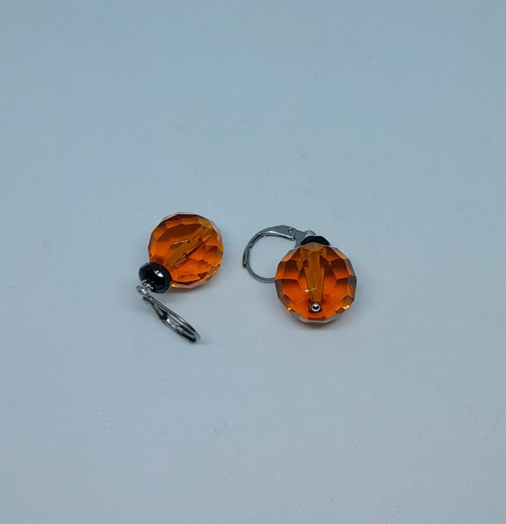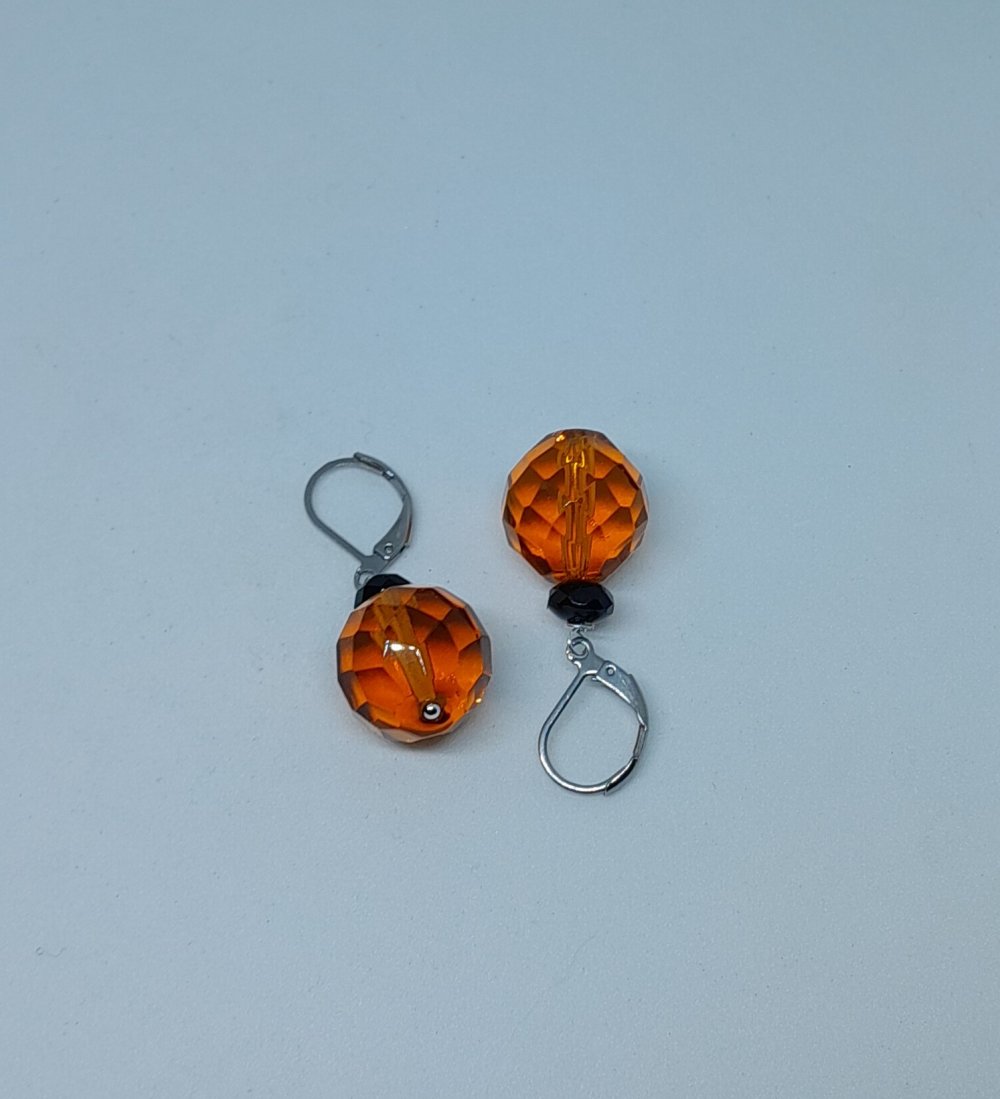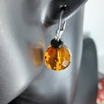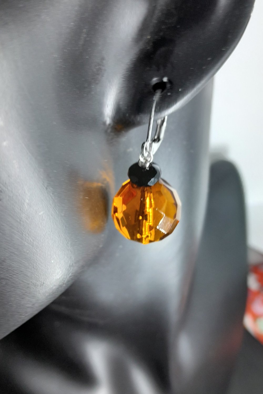 boucles d'oreille dormeuses en acier inoxydable et verre de bohème facetté ambre 14 mm et noir 6 mm