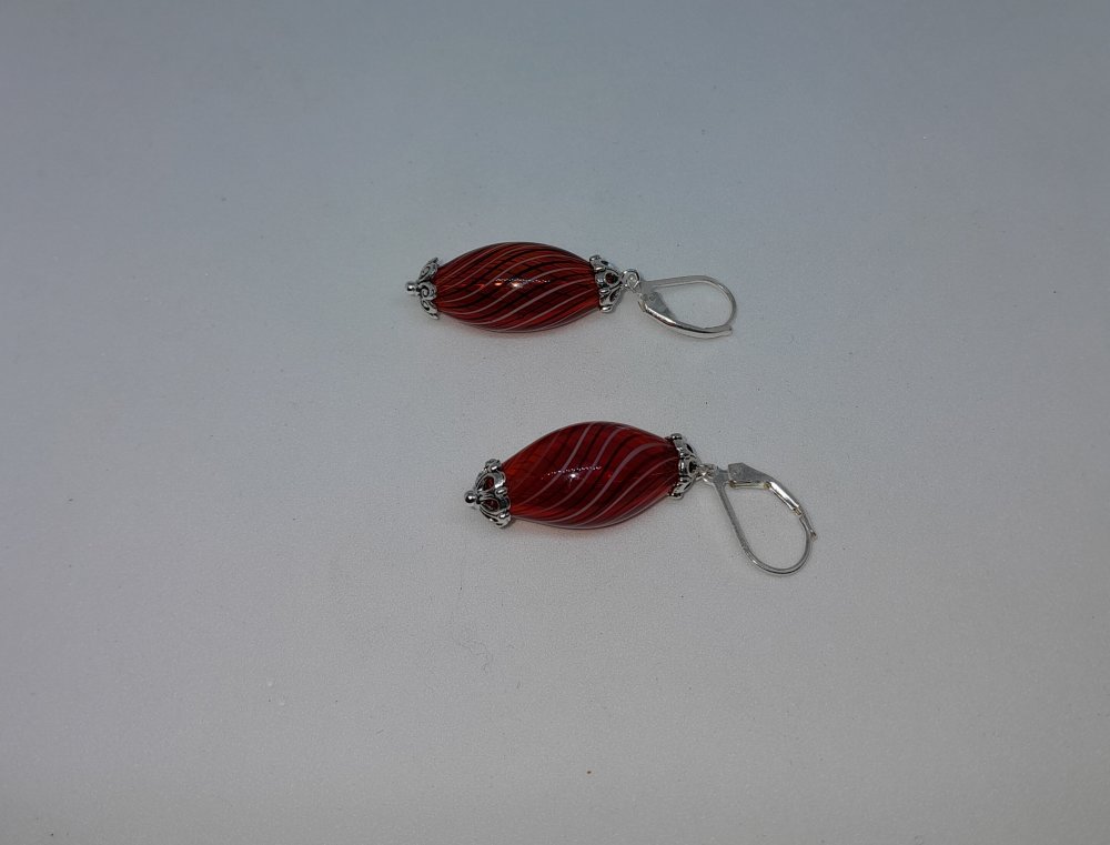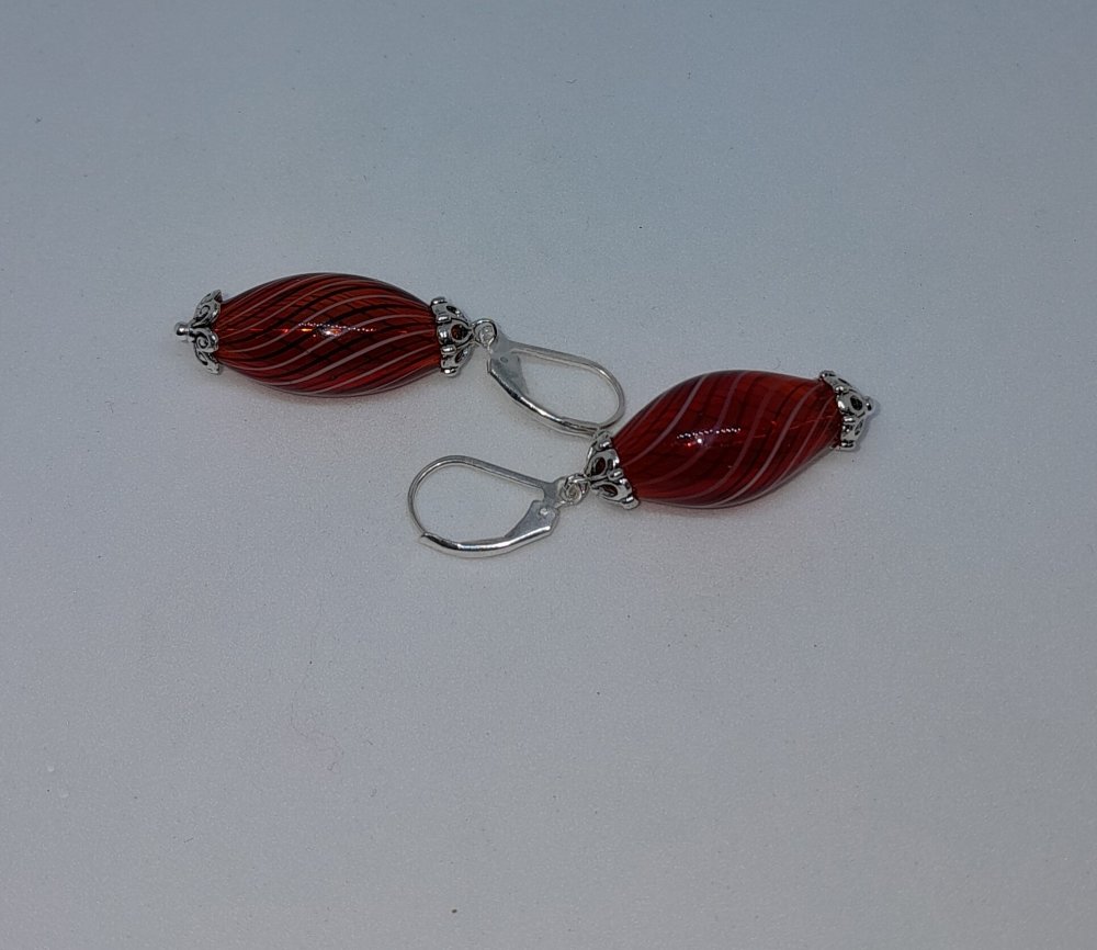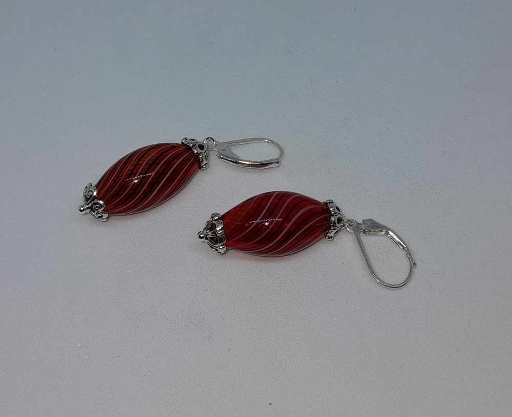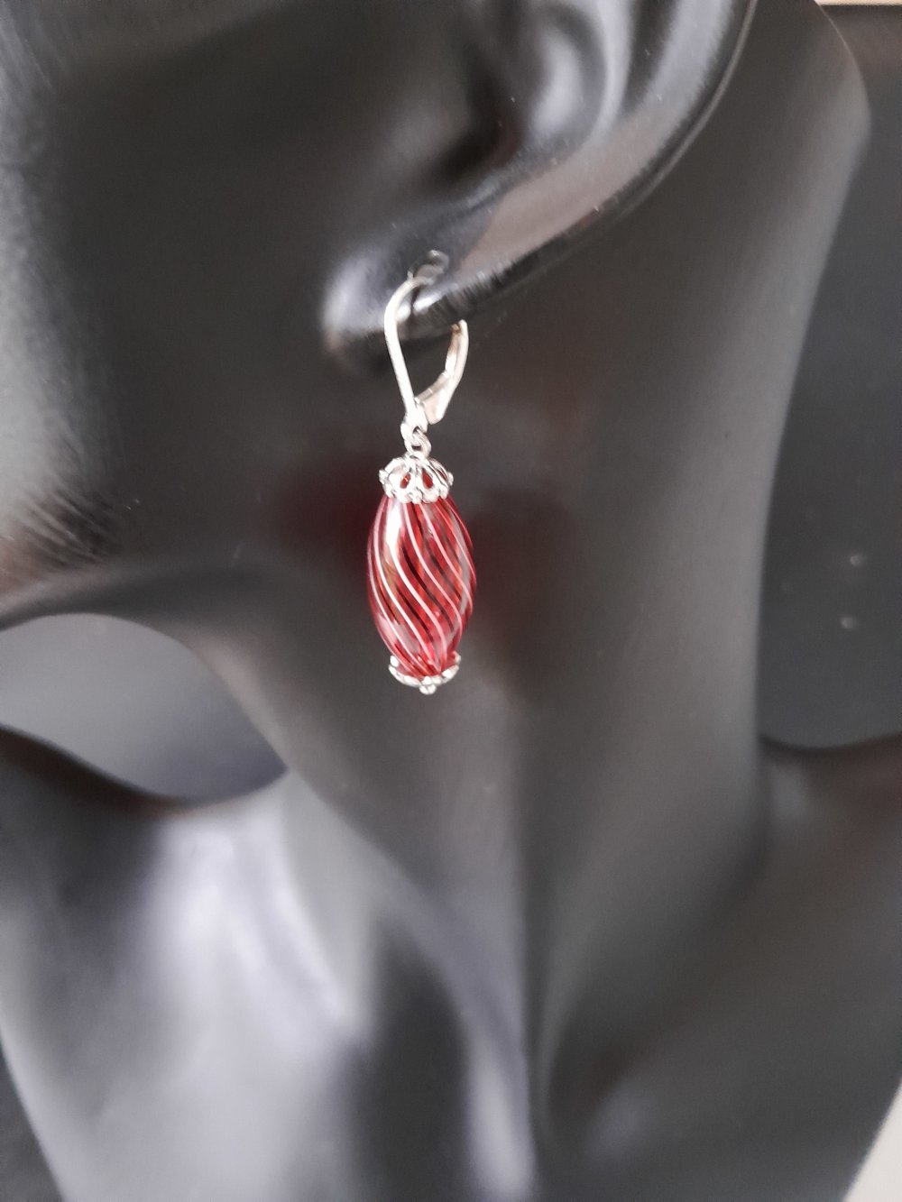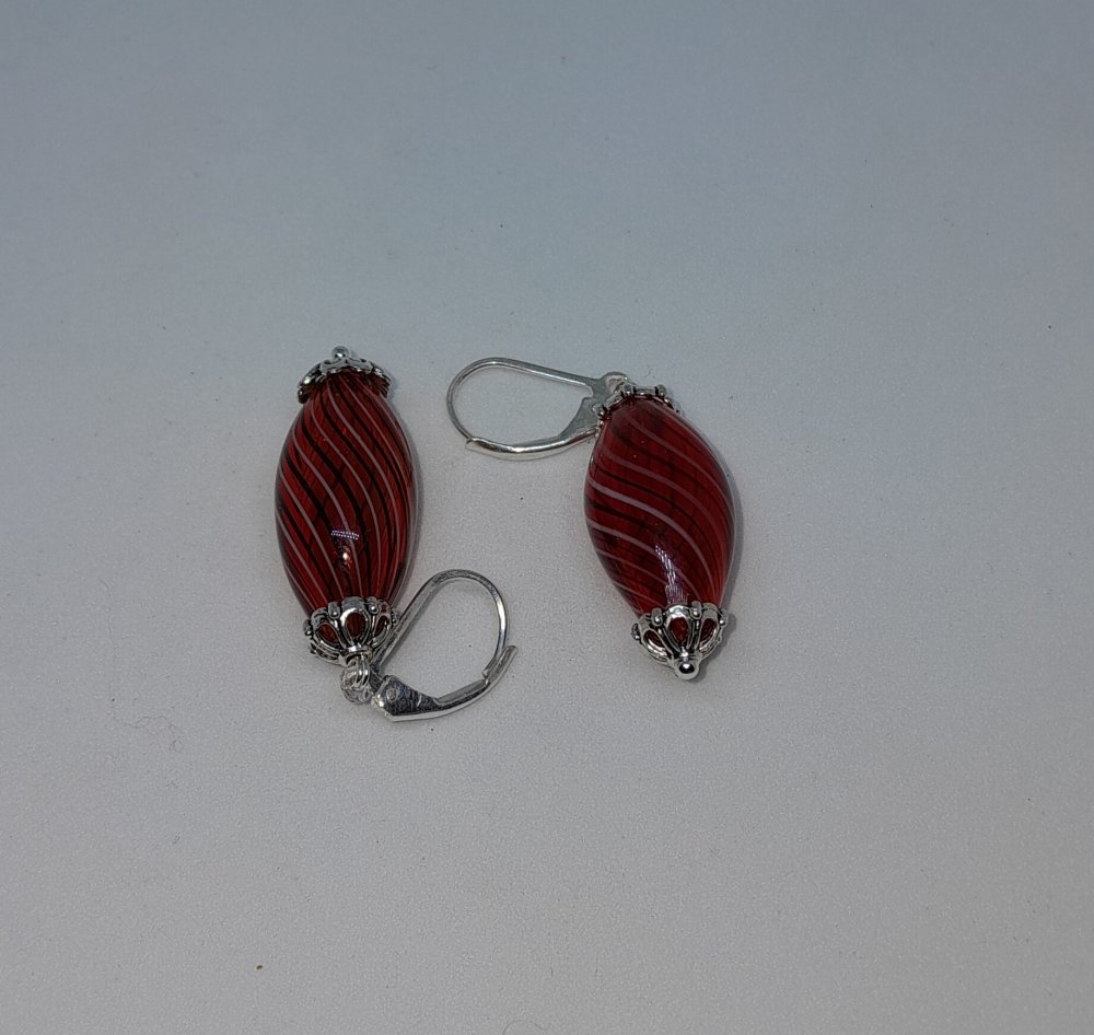 boucles d'oreille coupelles tige et dormeuses en argent et en verre de Murano