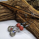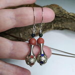 De belles boucles au style ethnique orientale, avec des pierres fines ainsi que de belles perles émaillées anciennes issues de l'artisanat marocain. Des boucles d'oreilles avec un style bien à elles. Elles sont très légères, seulement 3gr chacune.