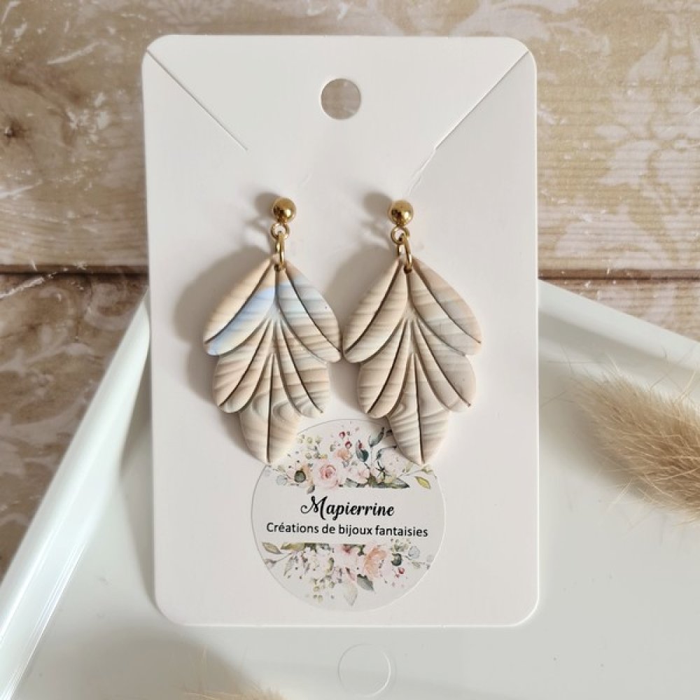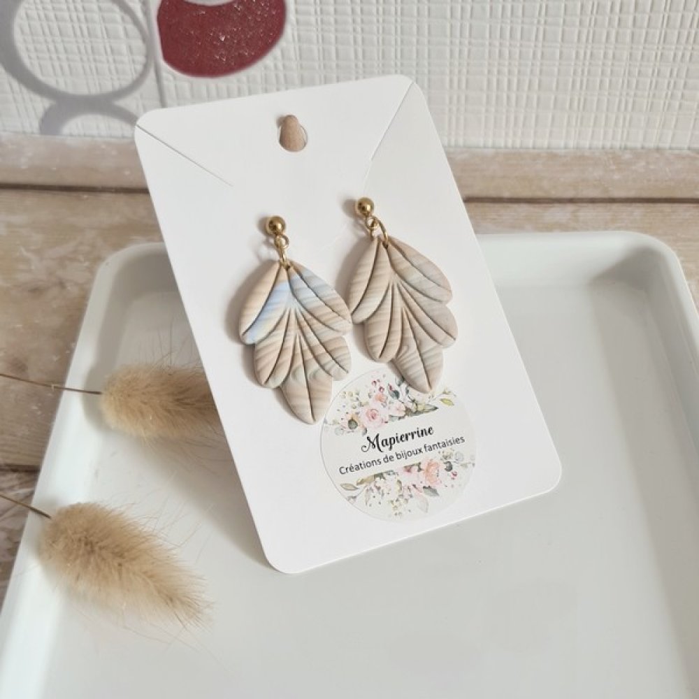 Boucles d’oreilles feuilles en pâte polymère – Fait main par Mapierrine-Créations