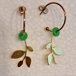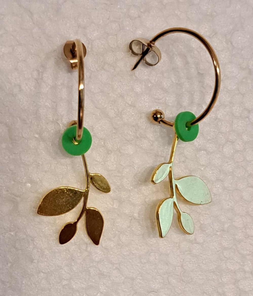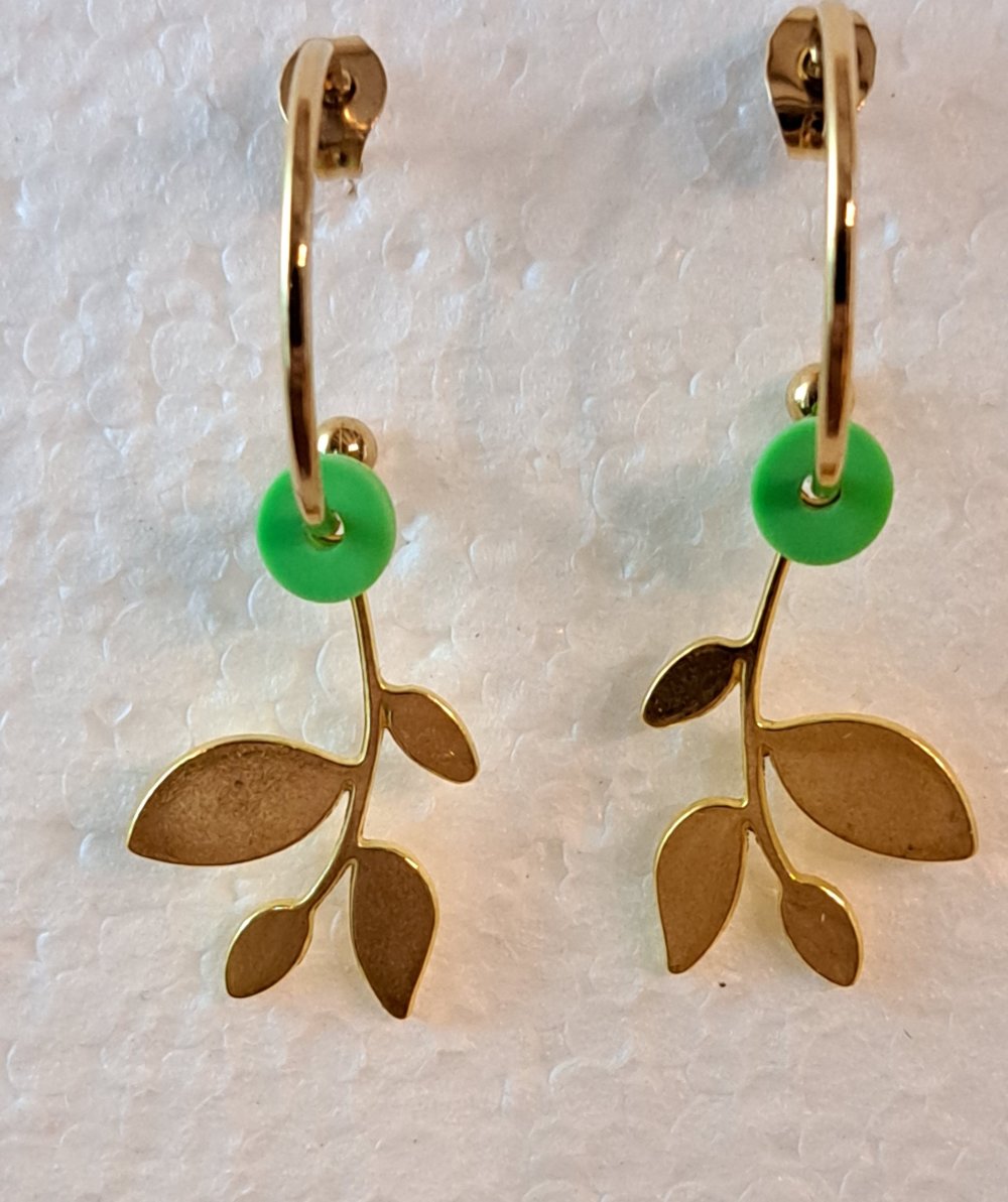 montage breloque feuilles dorées, disque acrylique vert