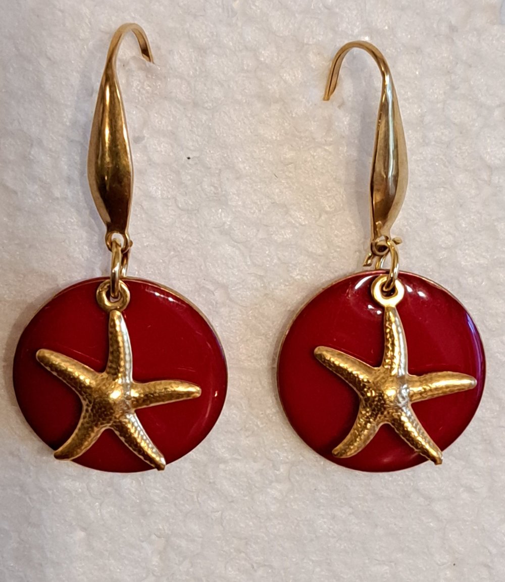 montage breloque étoile et disque émaillé rouge (2 cm), pe