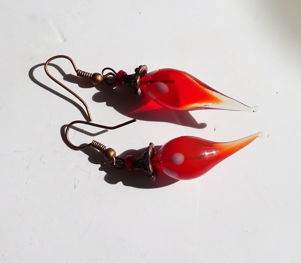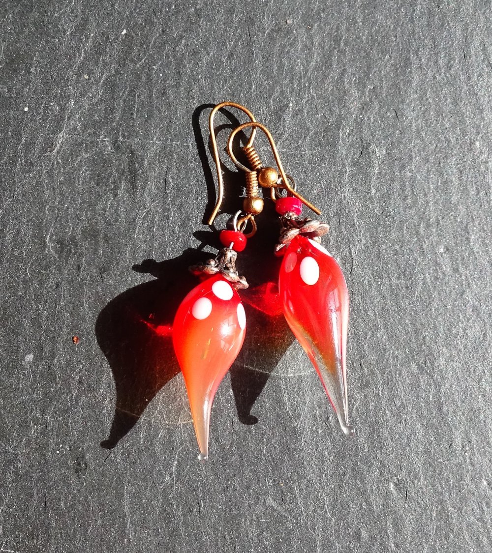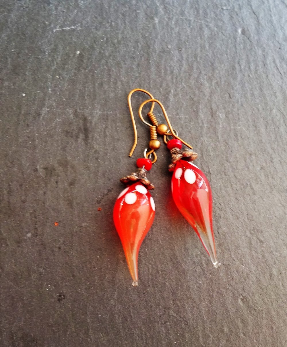 boucles d'oreille ornés de perles filées à la main par la créatrice