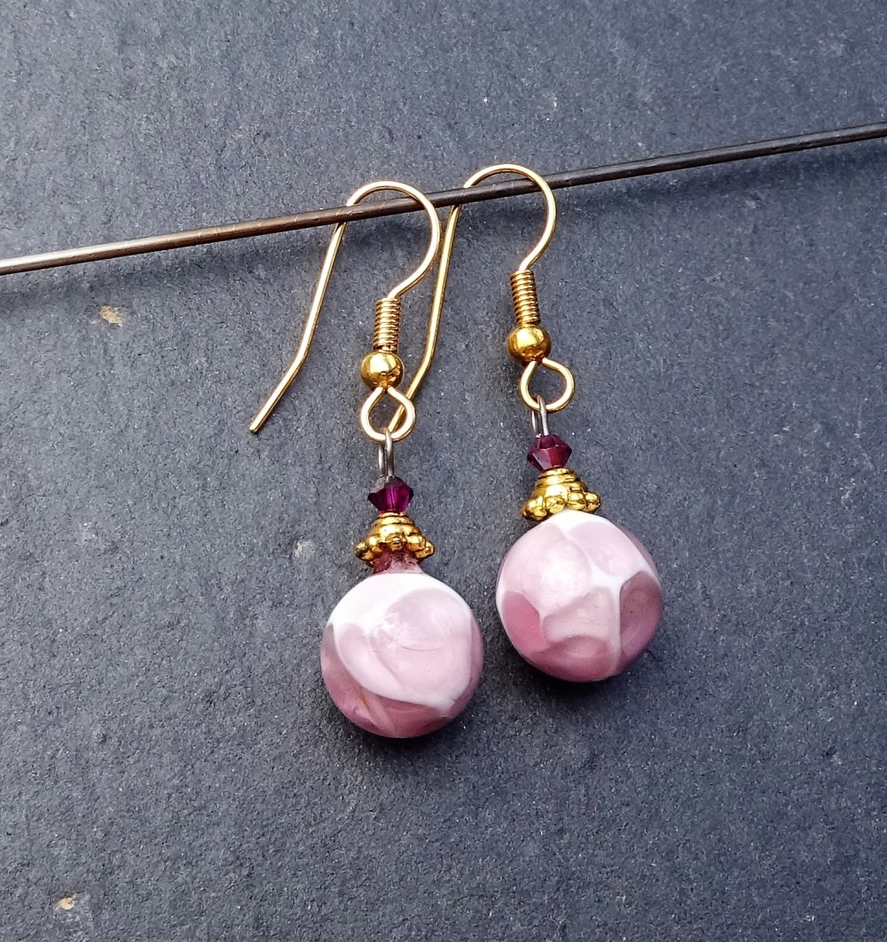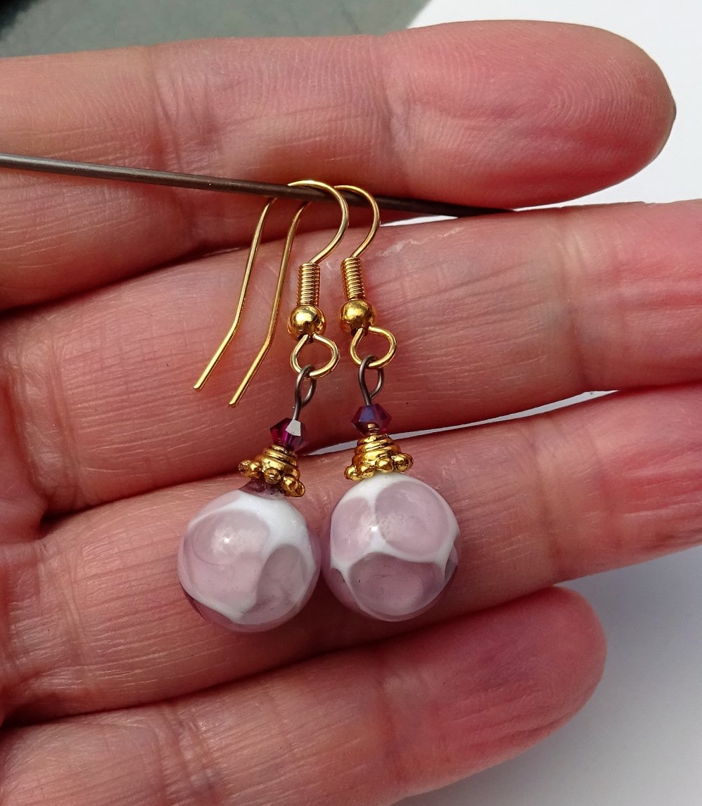 boucles d'oreille ornés de perles filées à la main par la créatrice