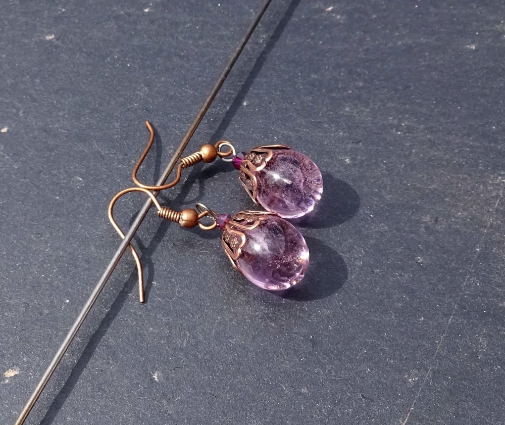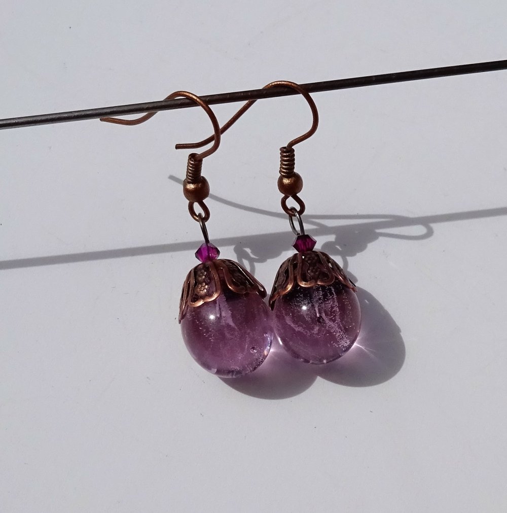 boucles d'oreille ornés de perles filées à la main par la créatrice