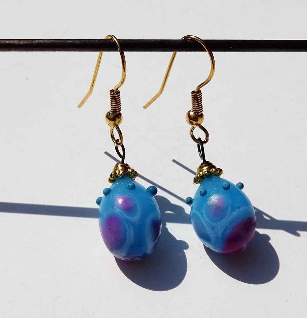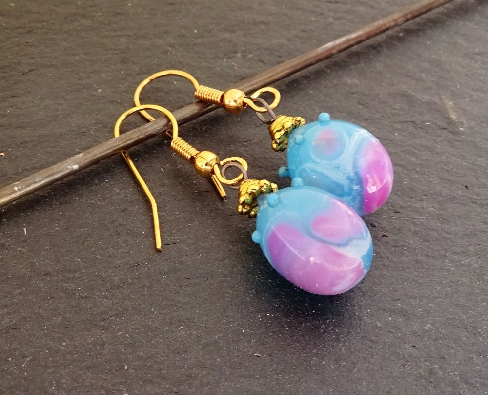 boucles d'oreille ornés de perles filées à la main par la créatrice